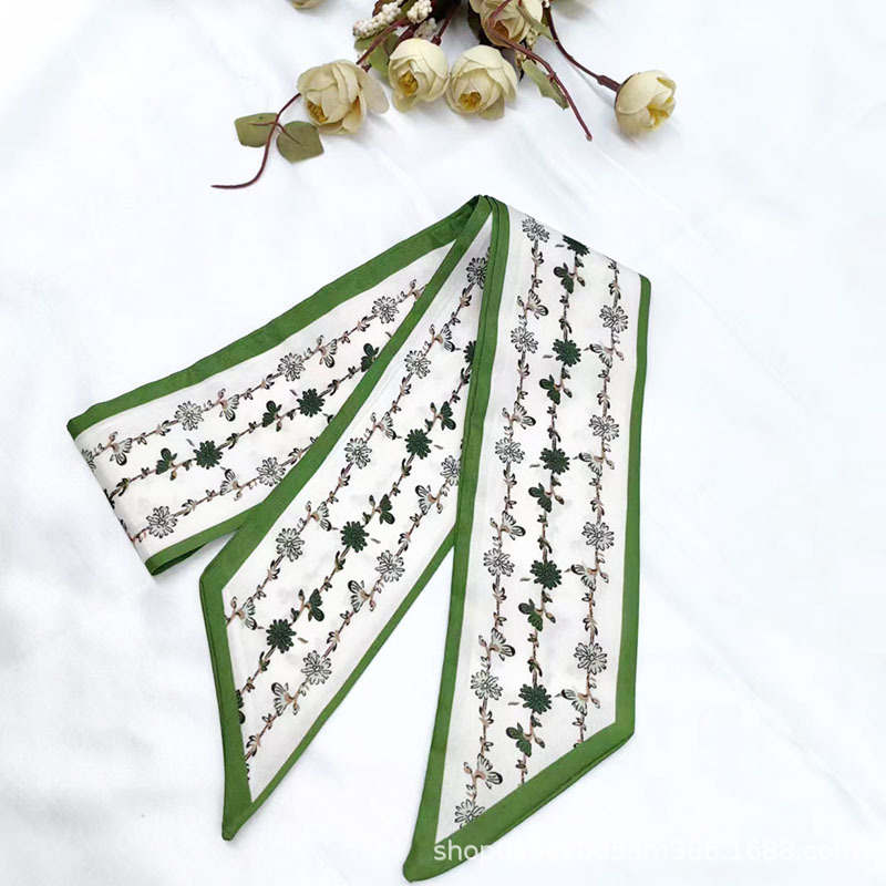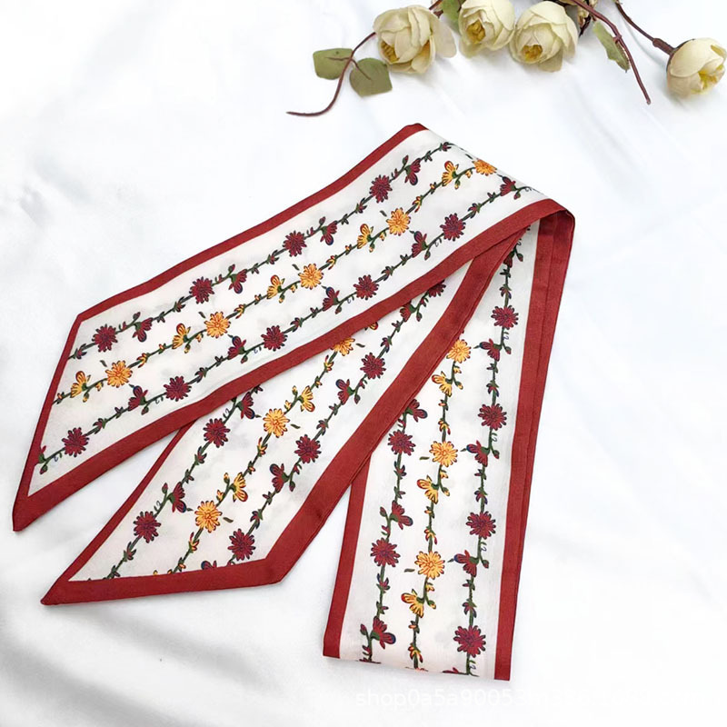 새로운 스타일 좁은 긴 작은 실크 스카프 여성 한국식 올매치 국화 꽃 넥타이 헤어 넥타이 가방 동반 손 선물 헤어 벨트 리본 스카프