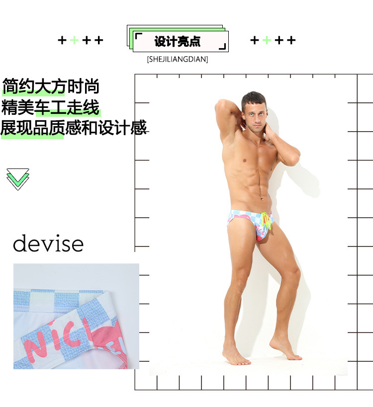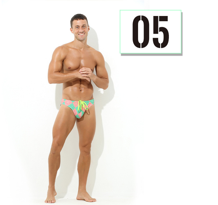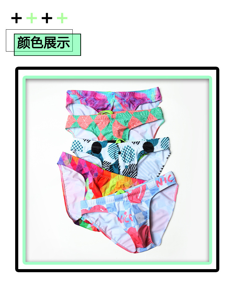 새로운 수영 트렁크 남성 수영 트렁크 낮은 허리 섹시한 패션 인쇄 삼각형 수영 트렁크 국경 새로운 청소년 수영 트렁크 남성