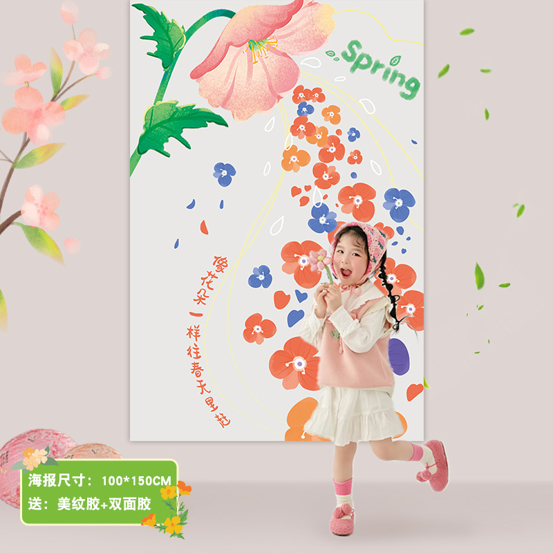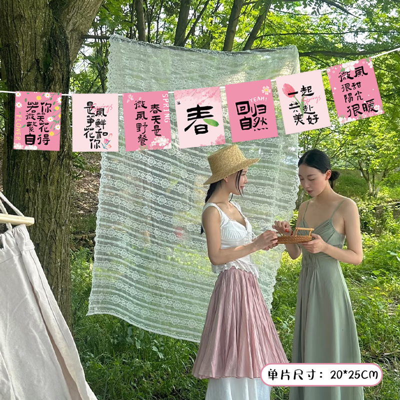 봄 장식 테마 작은 안뜰 나들이 가게 매달려있는 천 캠프장 배경 천 수직 천 유치원 분위기 봄스토어 가기