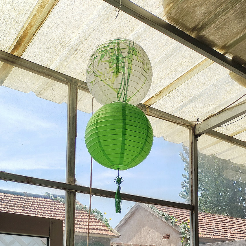 • 흰색 배경의 30cm 녹색 대나무 랜턴 1개