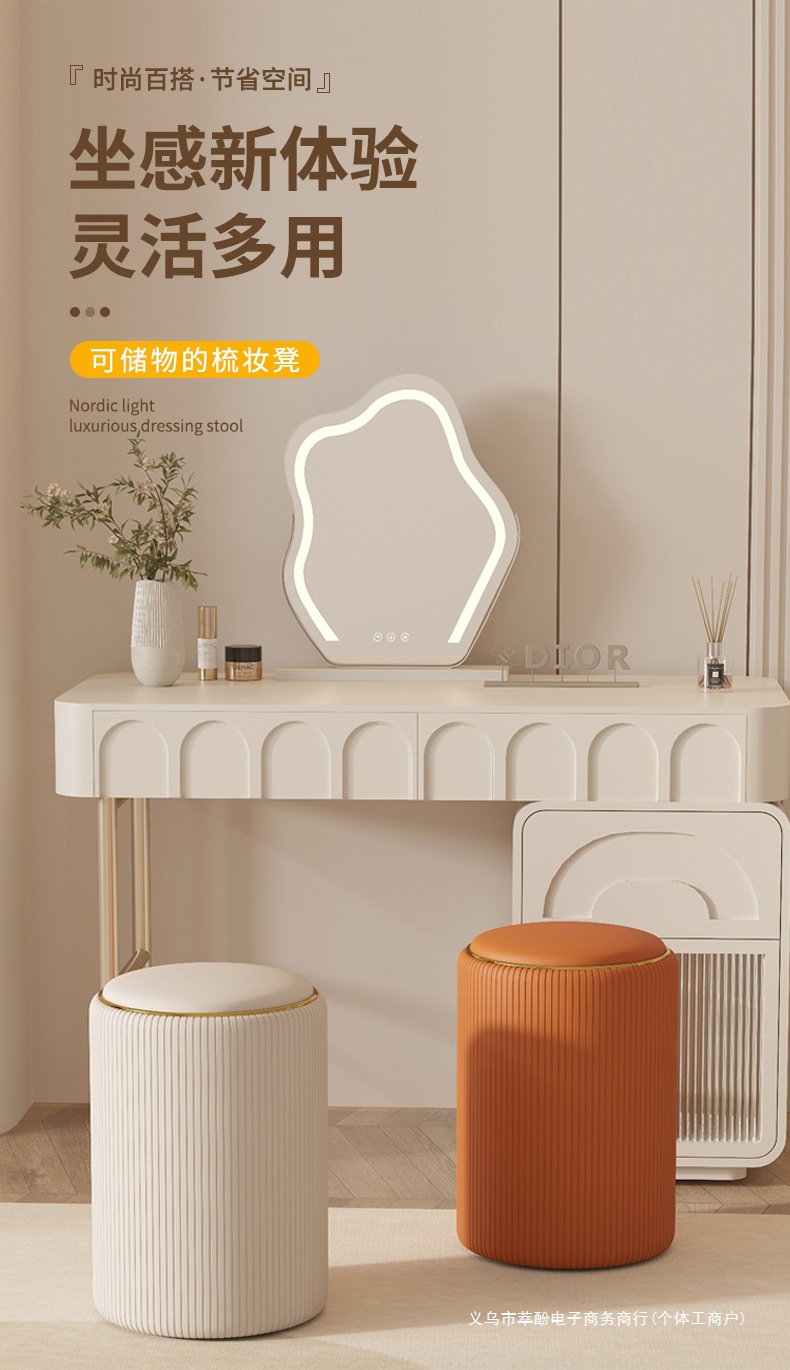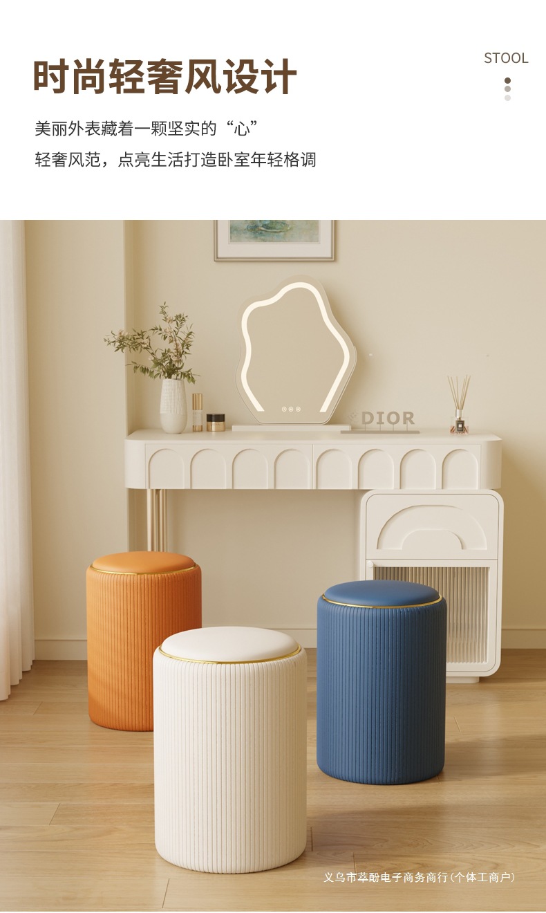 가벼운 고급 드레싱 의자 가구 드레싱 테이블 의자 뷰티 네일 크림 스타일 침실 메이크업 의자 보관 라운드 의자