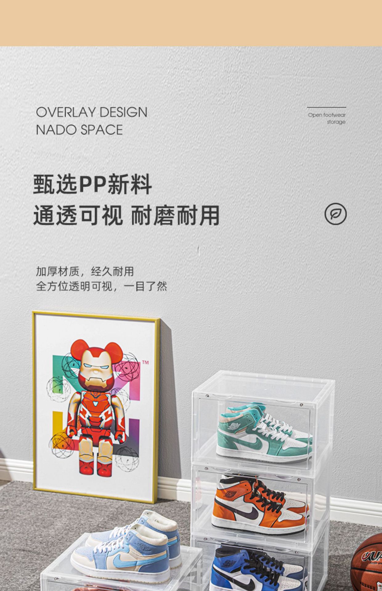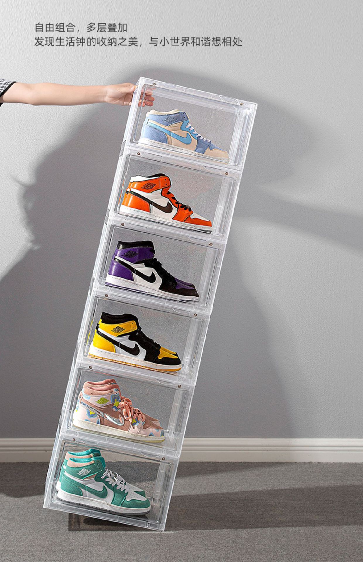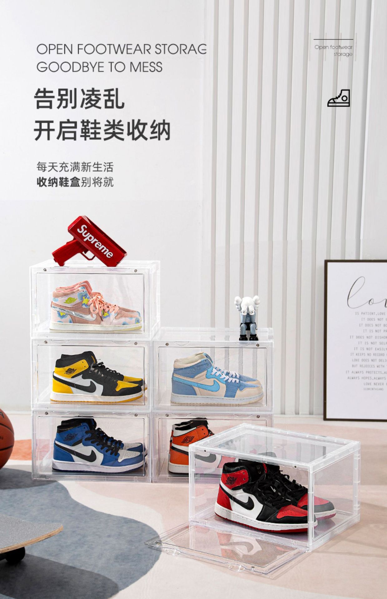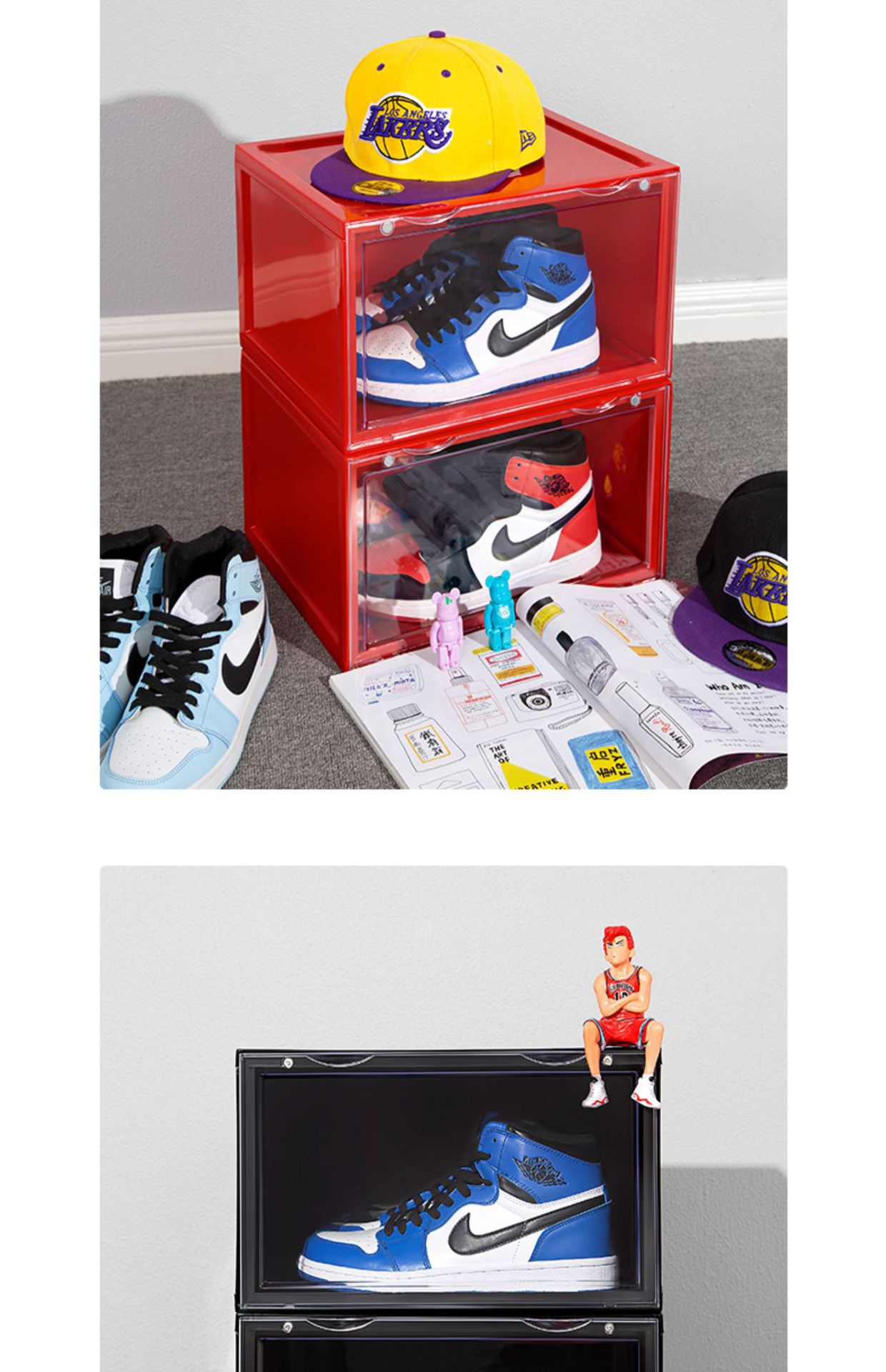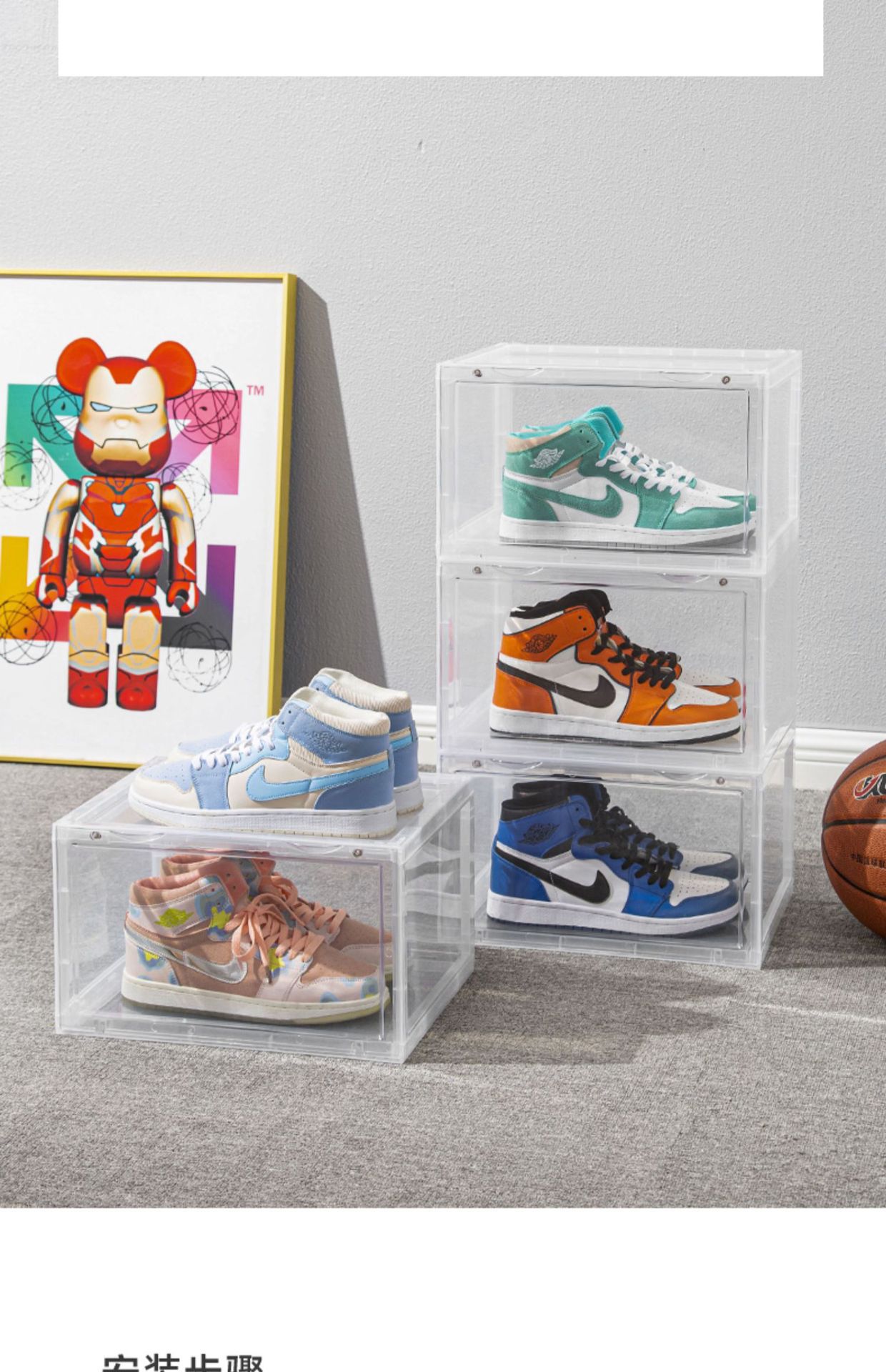 AURGA 투명 사이드 오프닝 신발 상자 운동화 디스플레이 아크릴 자기 저장 상자 플라스틱 신발 캐비닛 인터넷 빨간 구두 벽