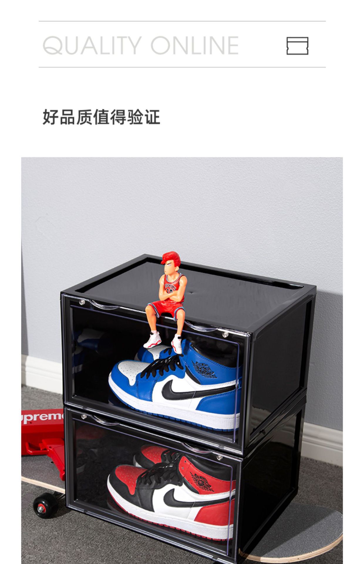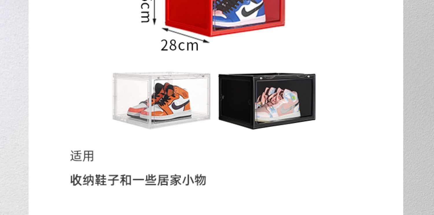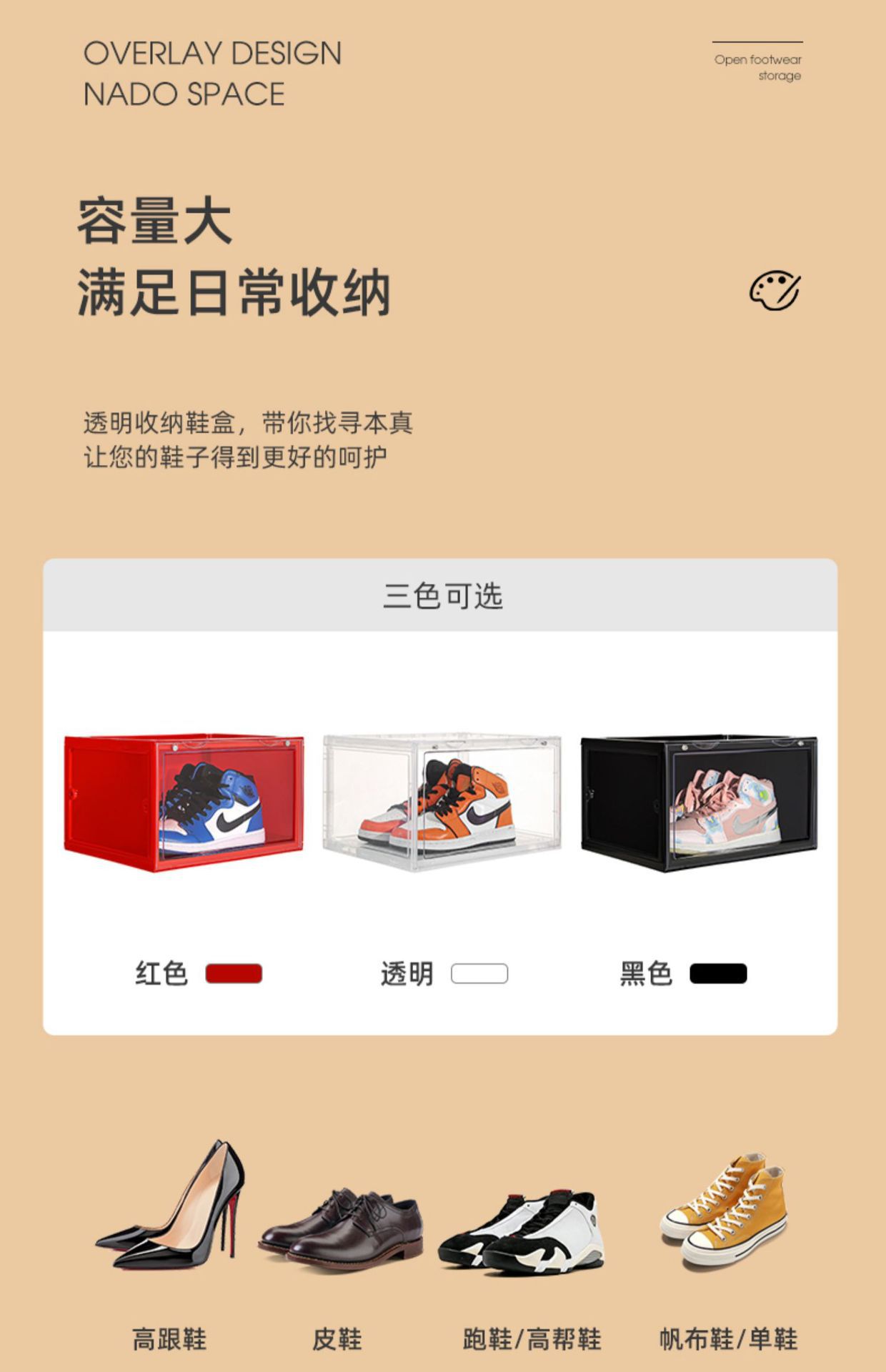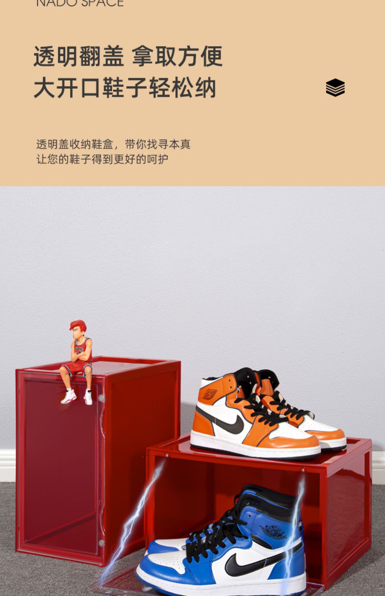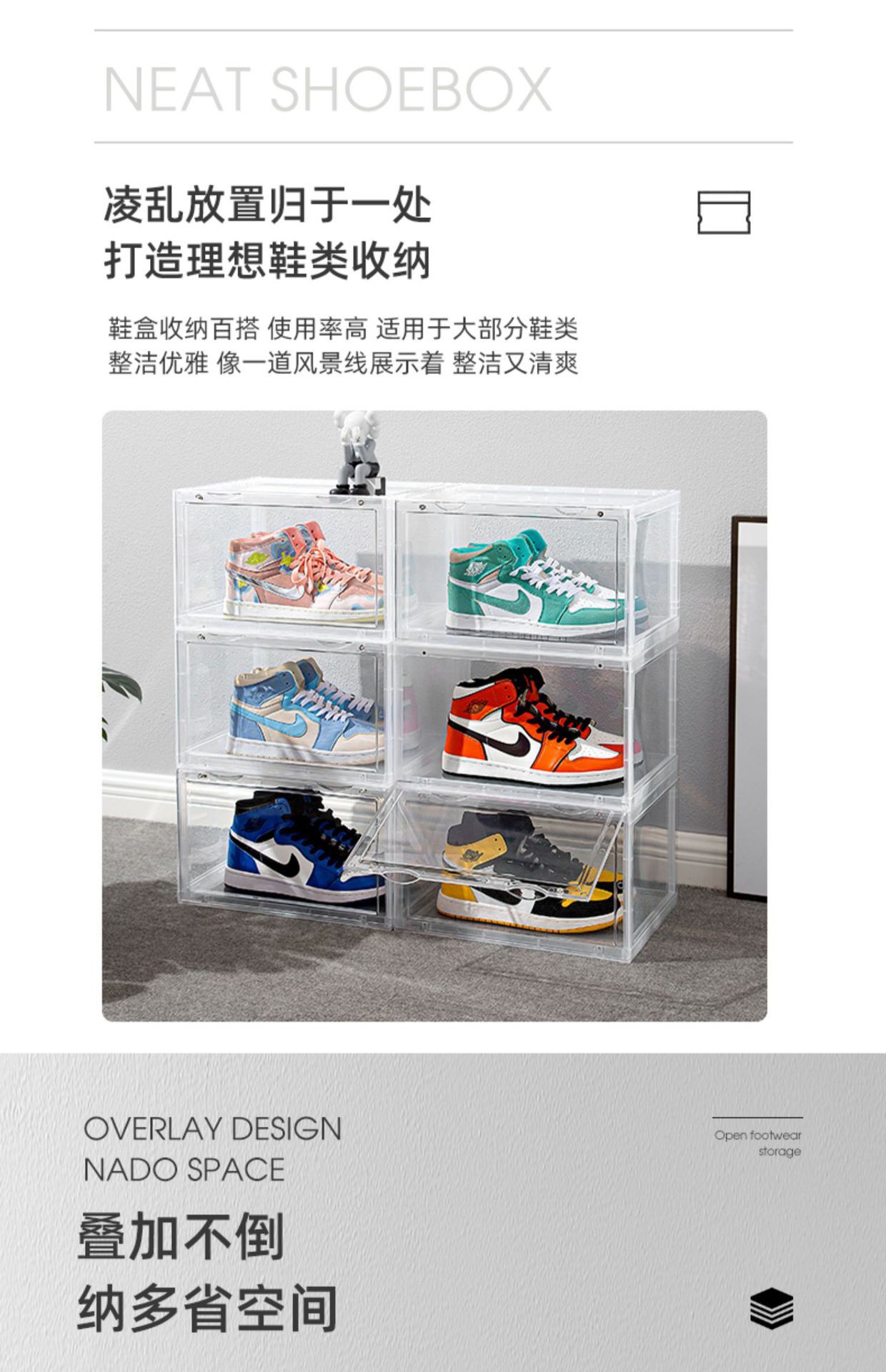 AURGA 투명 사이드 오프닝 신발 상자 운동화 디스플레이 아크릴 자기 저장 상자 플라스틱 신발 캐비닛 인터넷 빨간 구두 벽