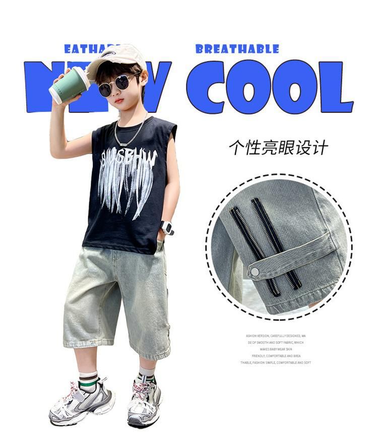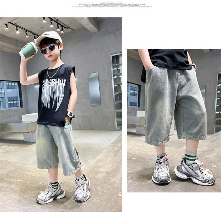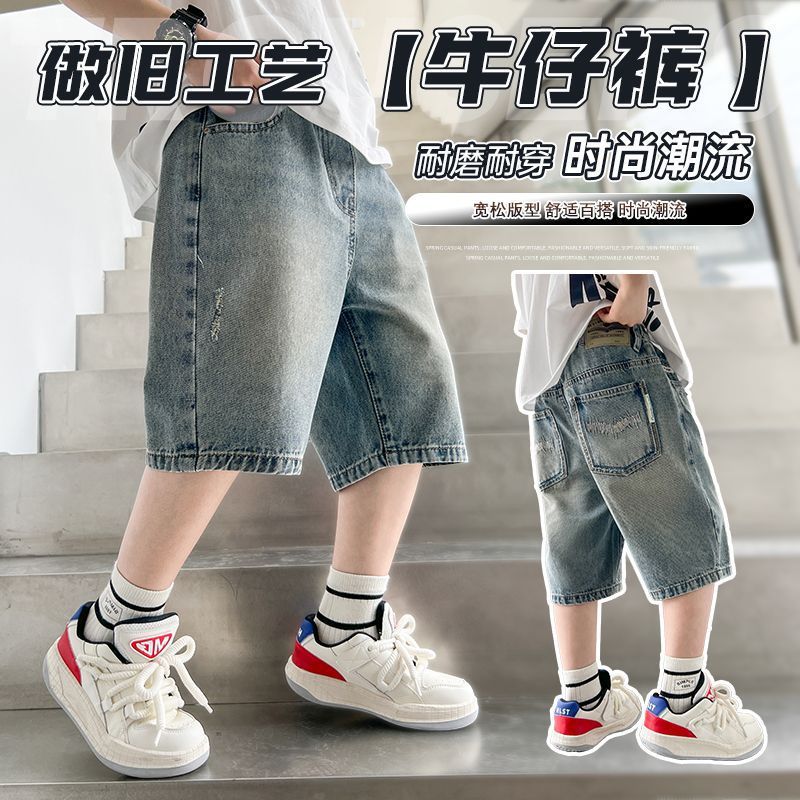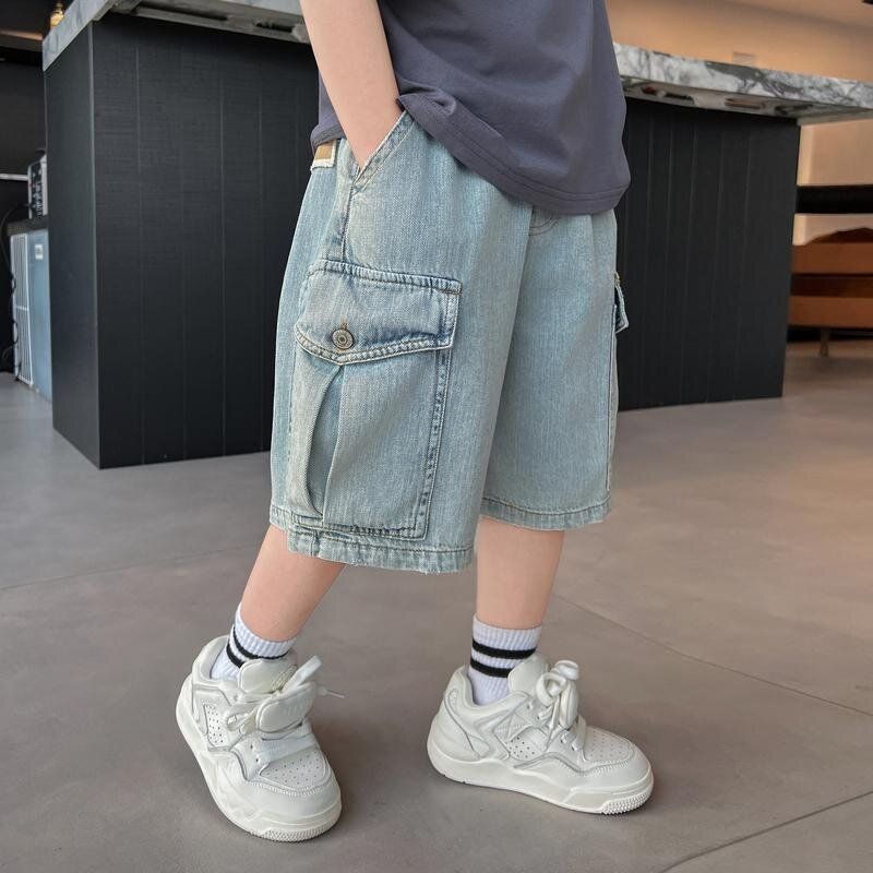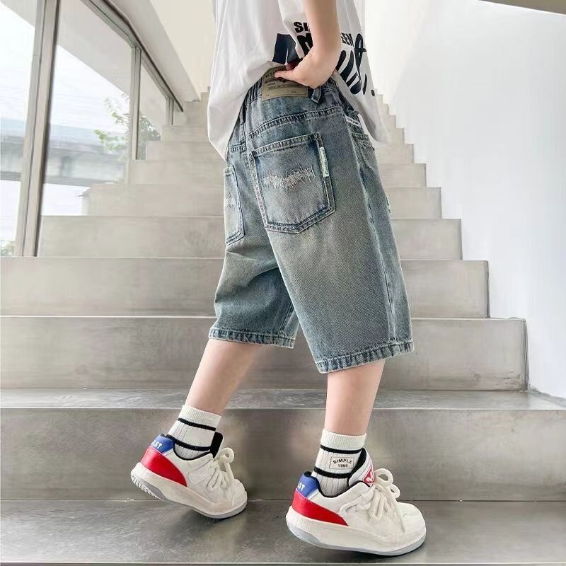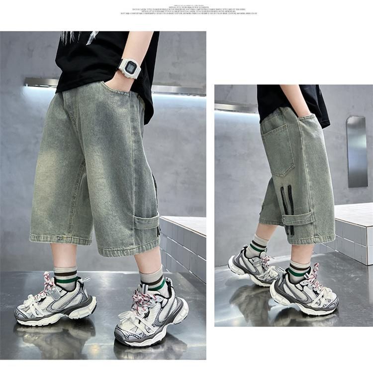 어린이 의류 소년 여름 자른 바지 여름 얇은 중대형 어린이 데님 반바지 여름 소년 캐주얼 바지