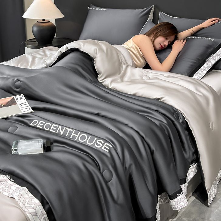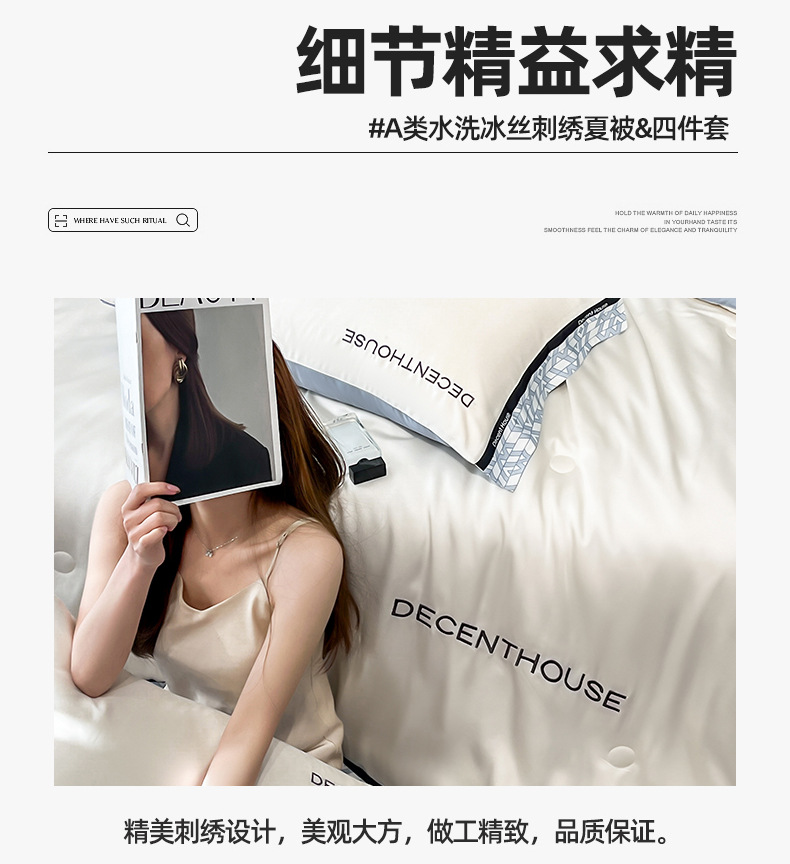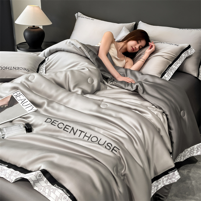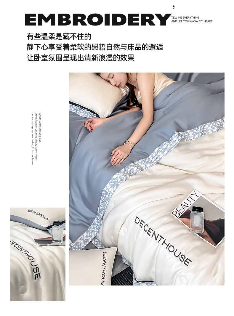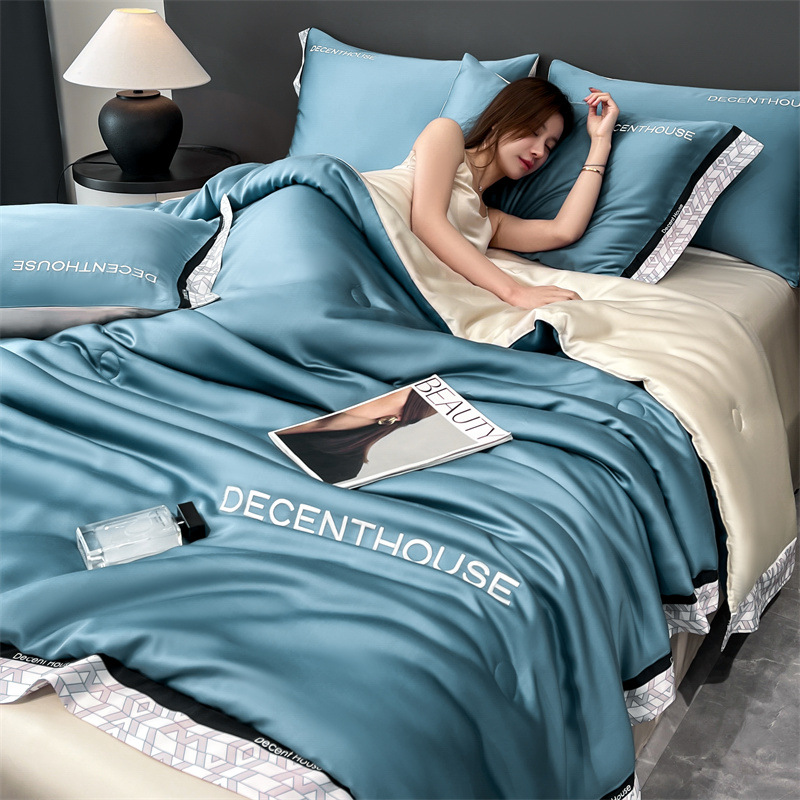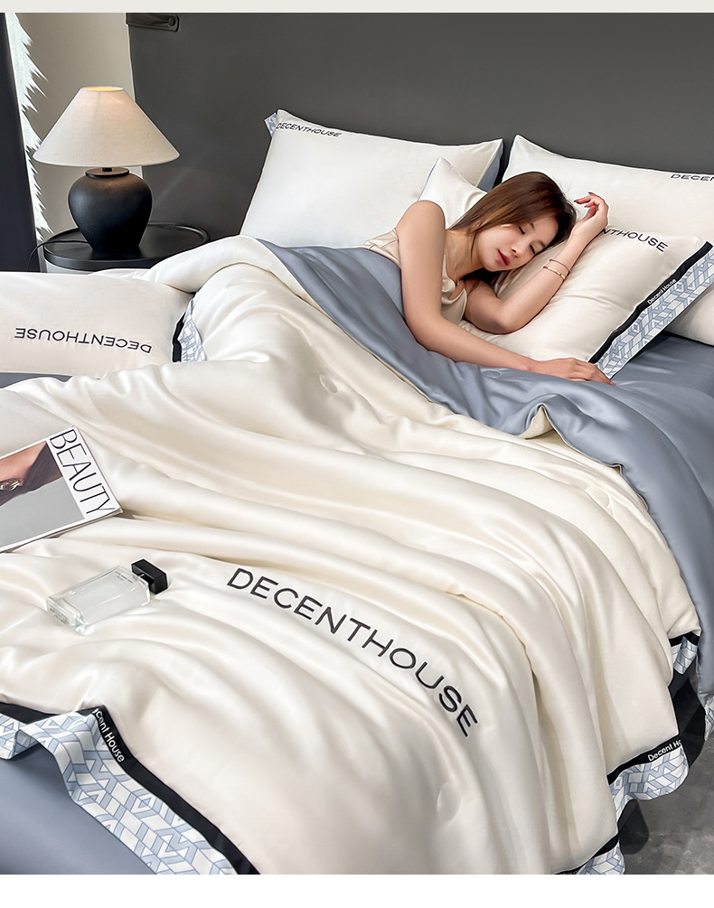 새로운 여름 자수 아이스 실크 여름 퀼트 여름 퀼트 4 조각 세트 쿨 에어컨 퀼트 싱글 기숙사 세탁기스토어 가기