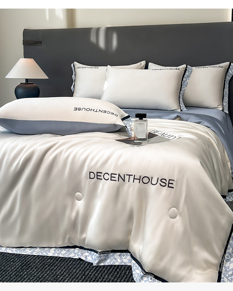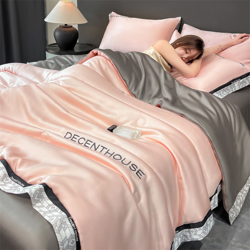 새로운 여름 자수 아이스 실크 여름 퀼트 여름 퀼트 4 조각 세트 쿨 에어컨 퀼트 싱글 기숙사 세탁기