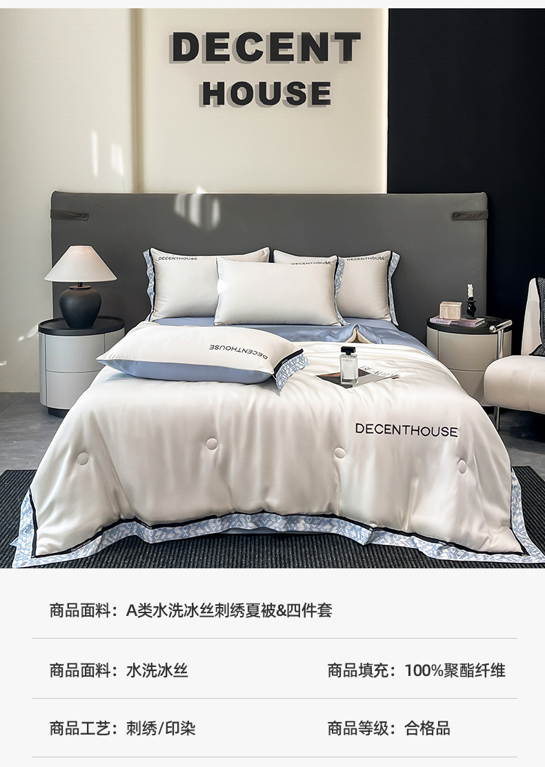 • 150*200cm 여름이불 4종세트 [1.5m 여름이불+시트 240*245+베갯잇*2]
