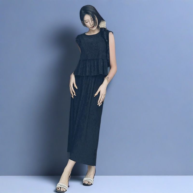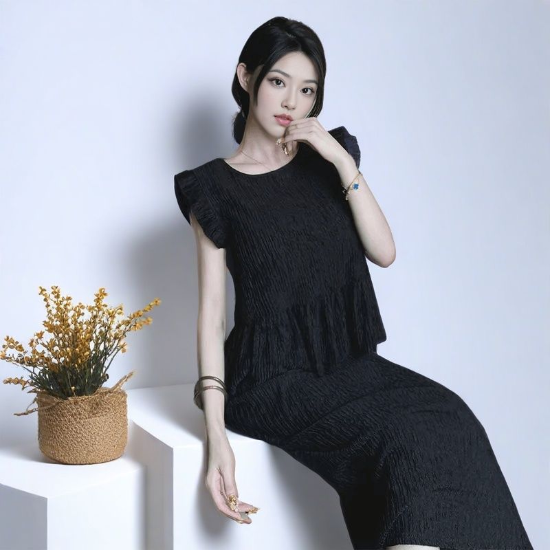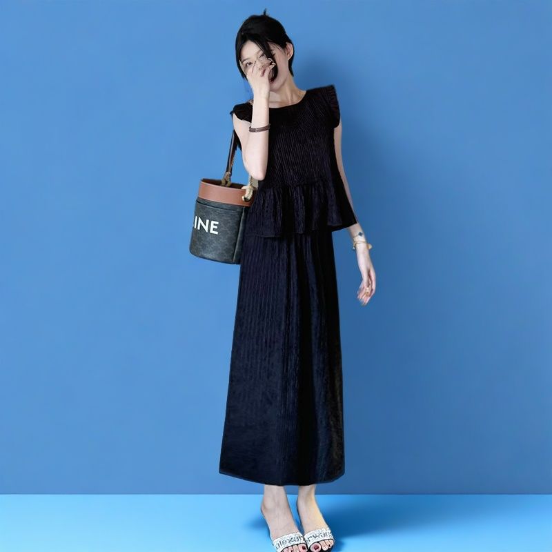 최고 치마/투피스 세트 여성 여름 새로운 스타일 서양식 루즈 스티칭 우아한 프랑스 스타일 캐주얼 세트