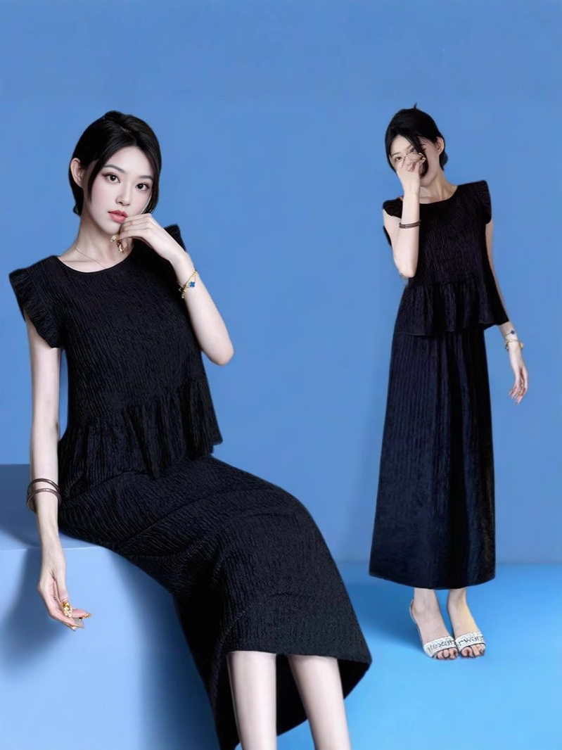 최고 치마/투피스 세트 여성 여름 새로운 스타일 서양식 루즈 스티칭 우아한 프랑스 스타일 캐주얼 세트스토어 가기