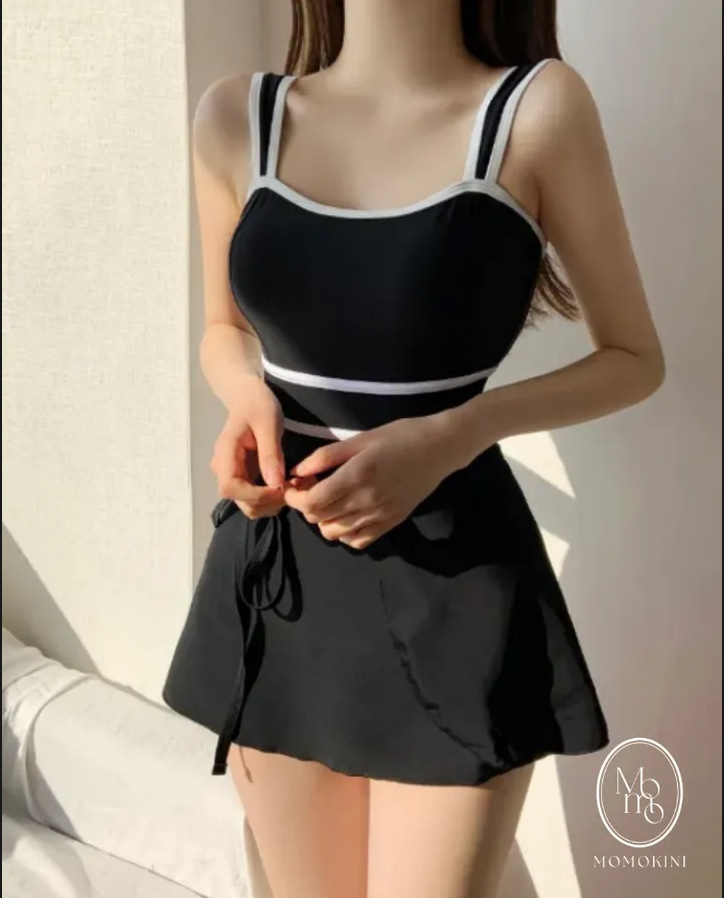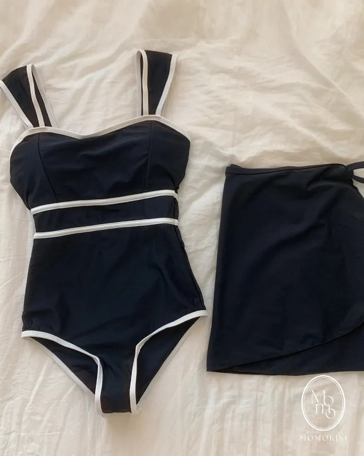 수영복 여성 2025 새로운 블랙 슬링 트라이앵글 원피스 투피스 세트 보수적 슬림 배꼽 커버 작은 가슴 온천스토어 가기