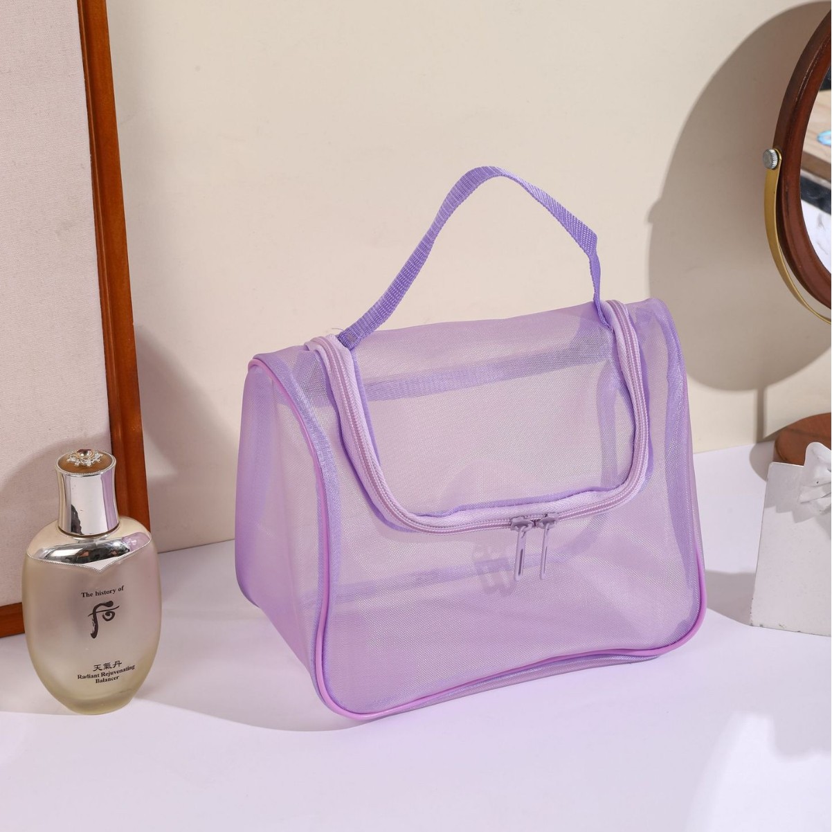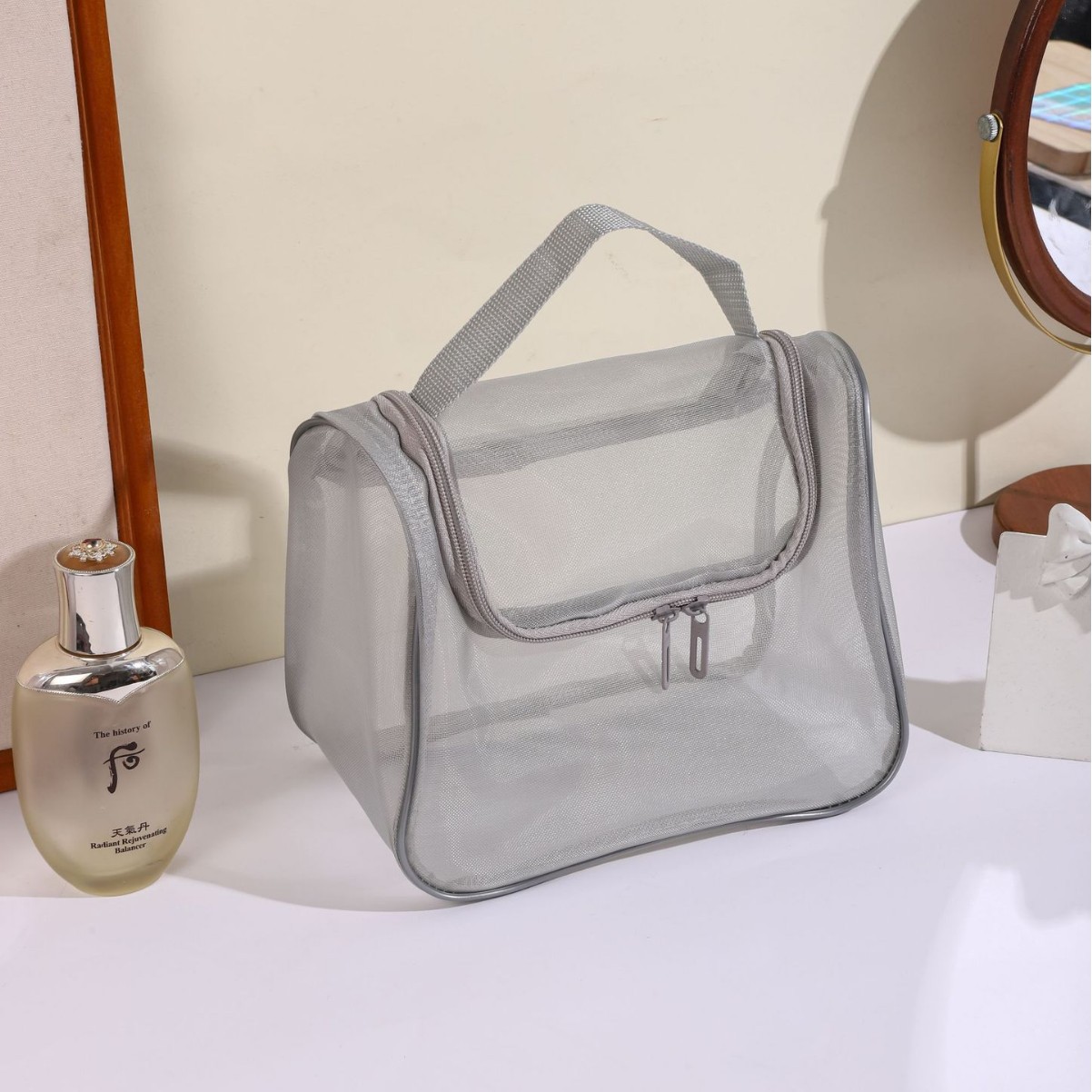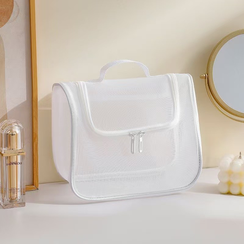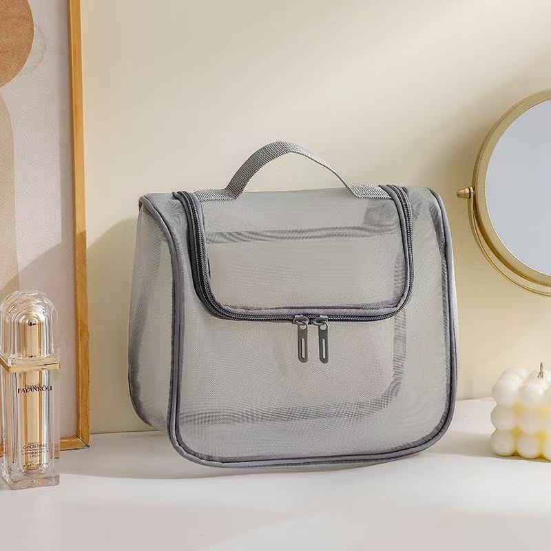 화장품 가방 여성용 휴대용 대용량 휴대용 여행 투명 화장실 가방 메쉬 화장품 브러시 보관 가방