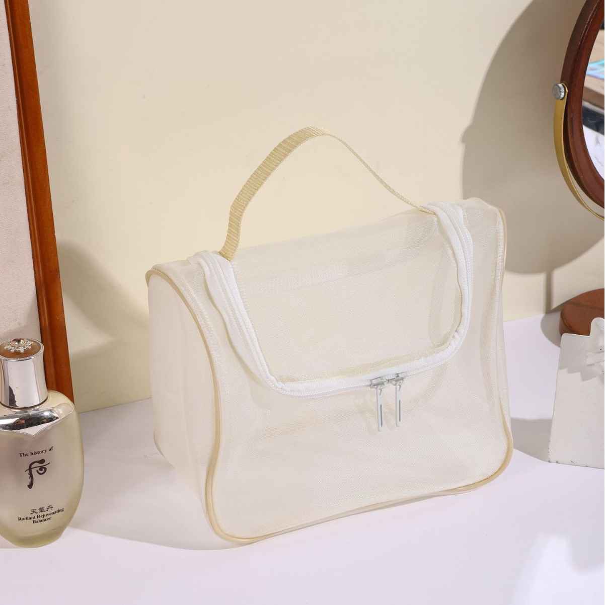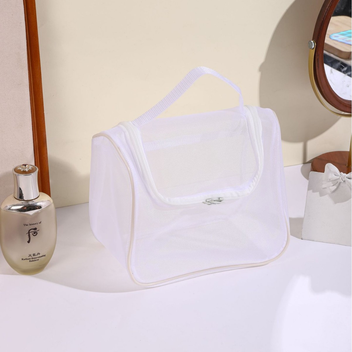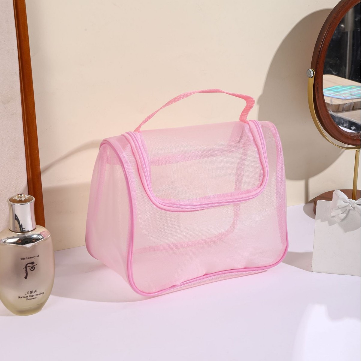 화장품 가방 여성용 휴대용 대용량 휴대용 여행 투명 화장실 가방 메쉬 화장품 브러시 보관 가방