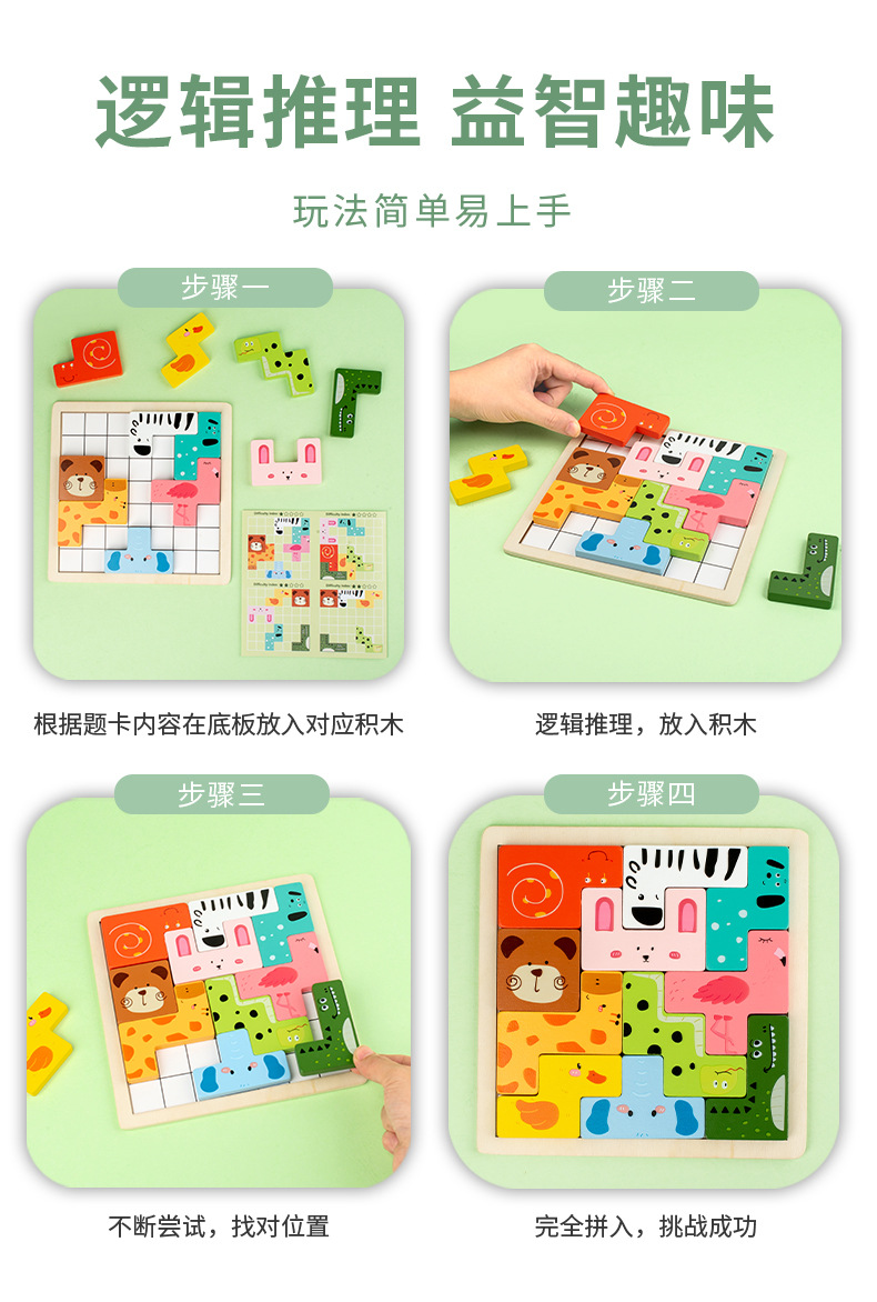 3 ~ 6 세 나무 퍼즐 논리적 사고 훈련 장난감 어린 아이들을위한 cpc ce Tetris 빌딩 블록 퍼즐스토어 가기