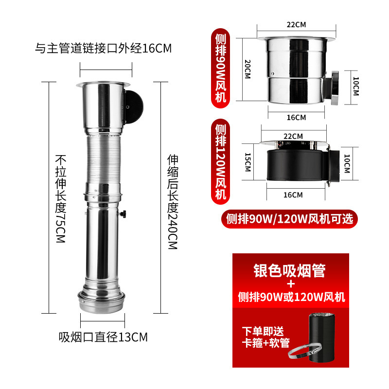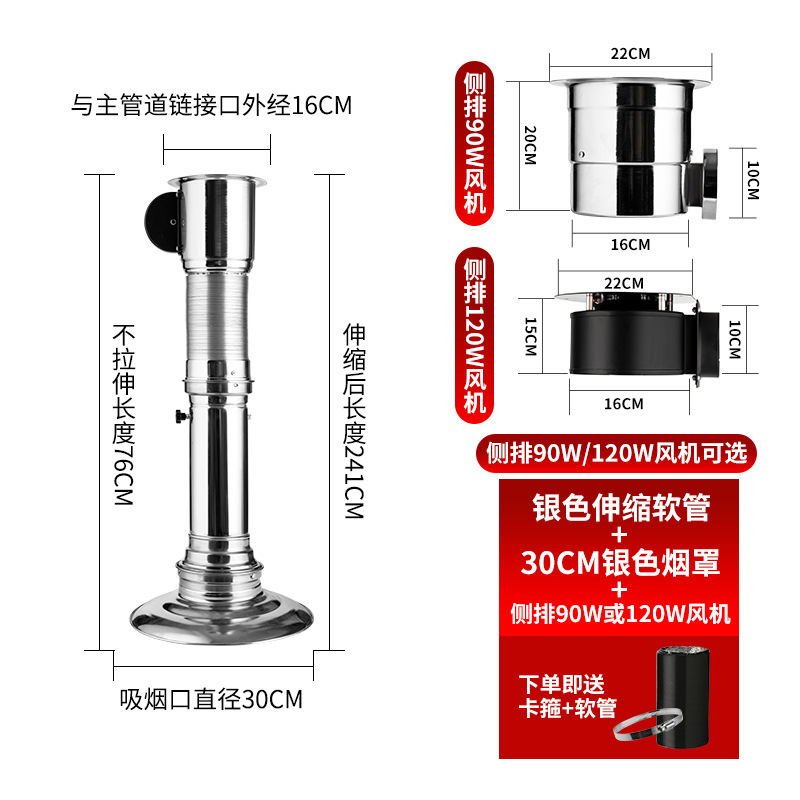 • 은색 두꺼운 텔레스코픽 연기 파이프 + 30cm 커버 + 직선 배기 팬