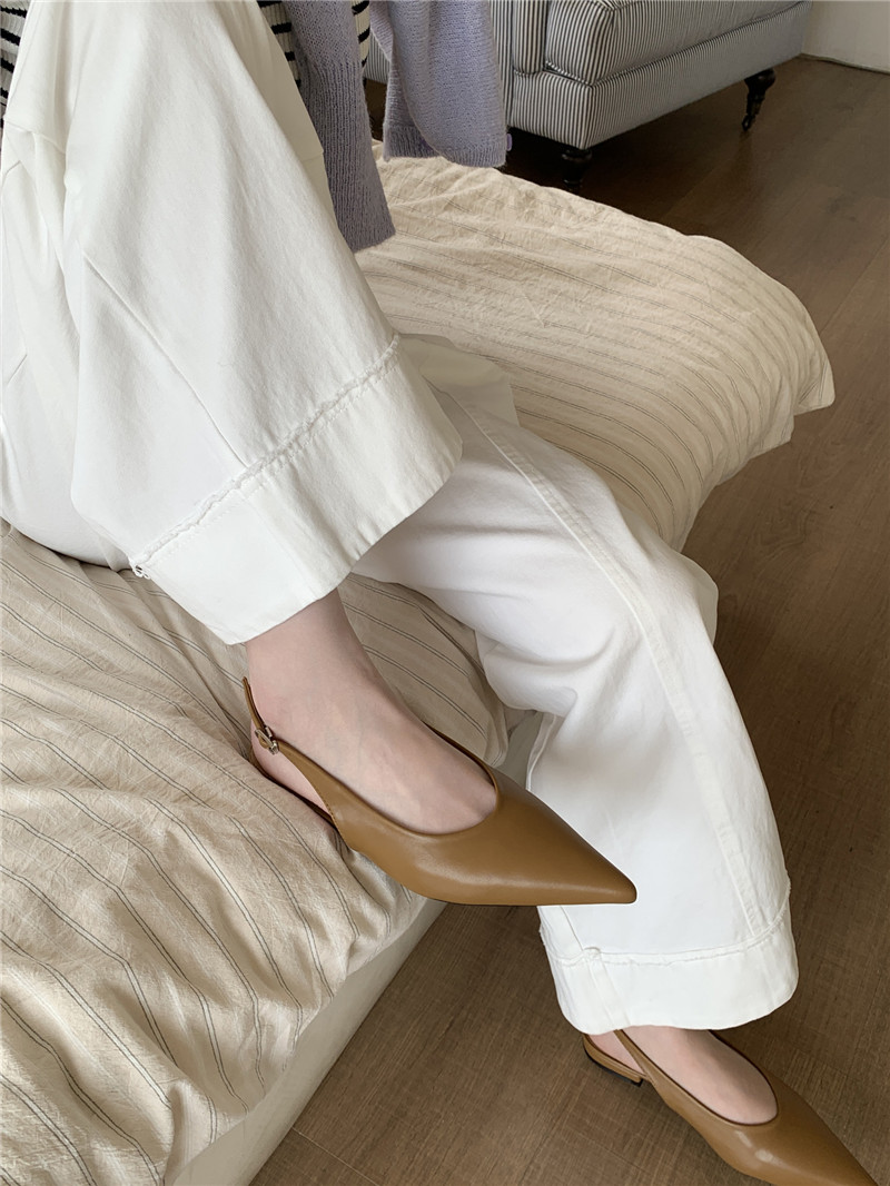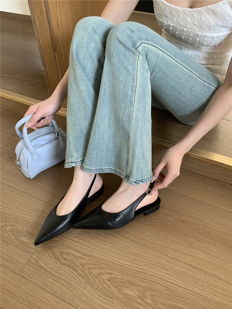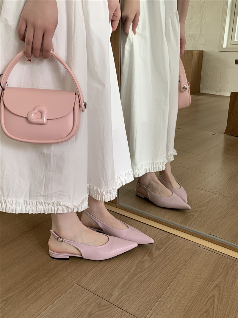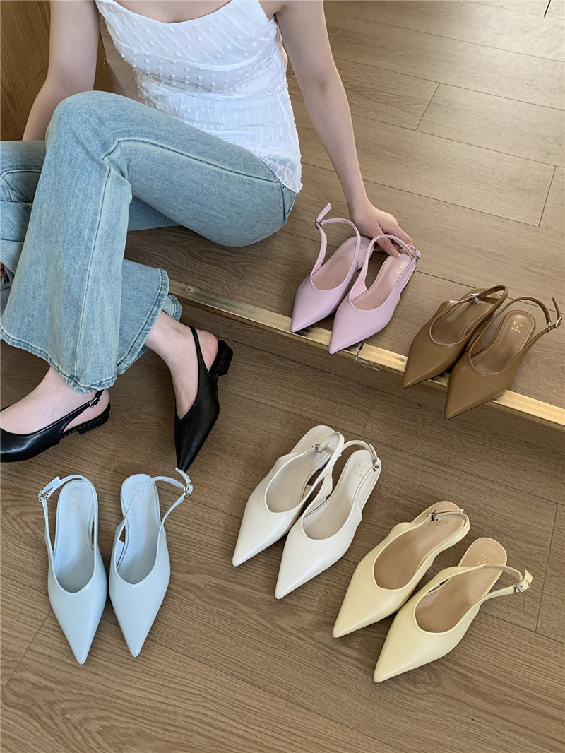 평평한 뾰족한 발가락 샌들 여성의 2025 년 봄과 여름 새로운 편안한 올 매치 통근 신발 작업 신발 여성을위한 아름다운 싱글 레이어 신발스토어 가기