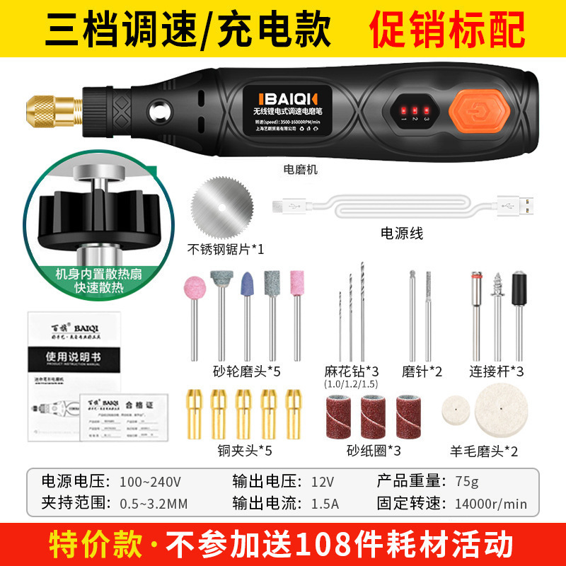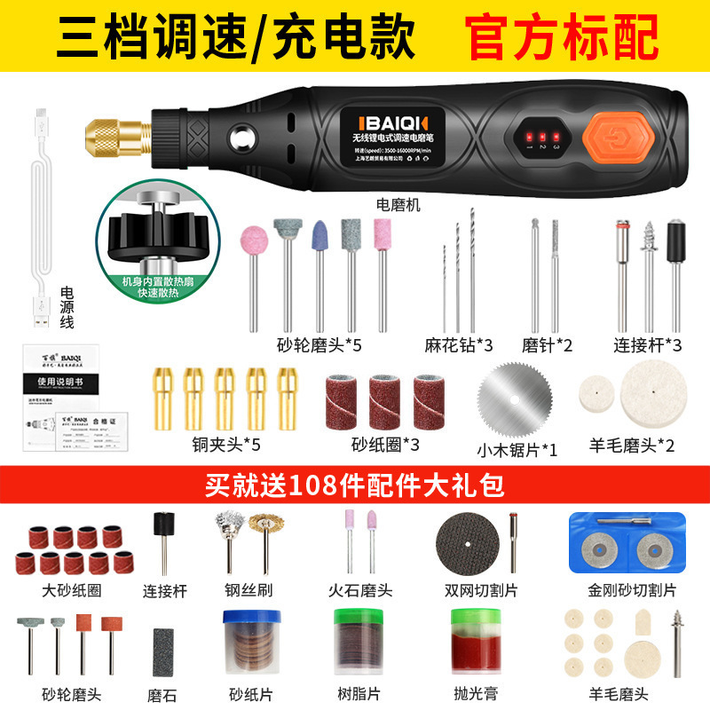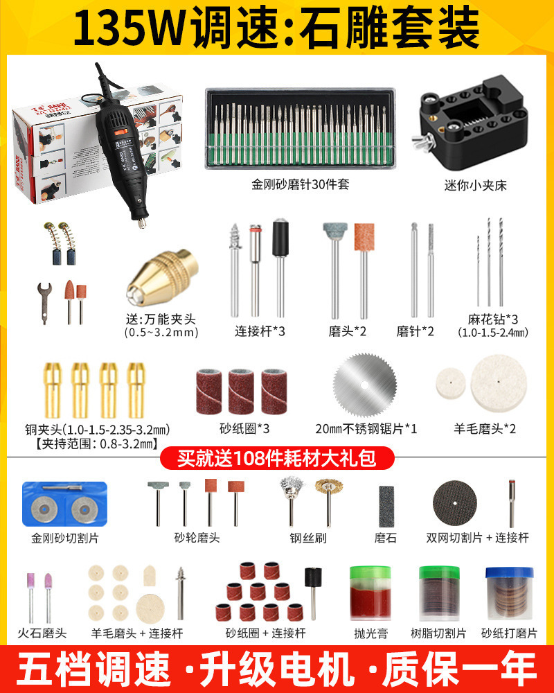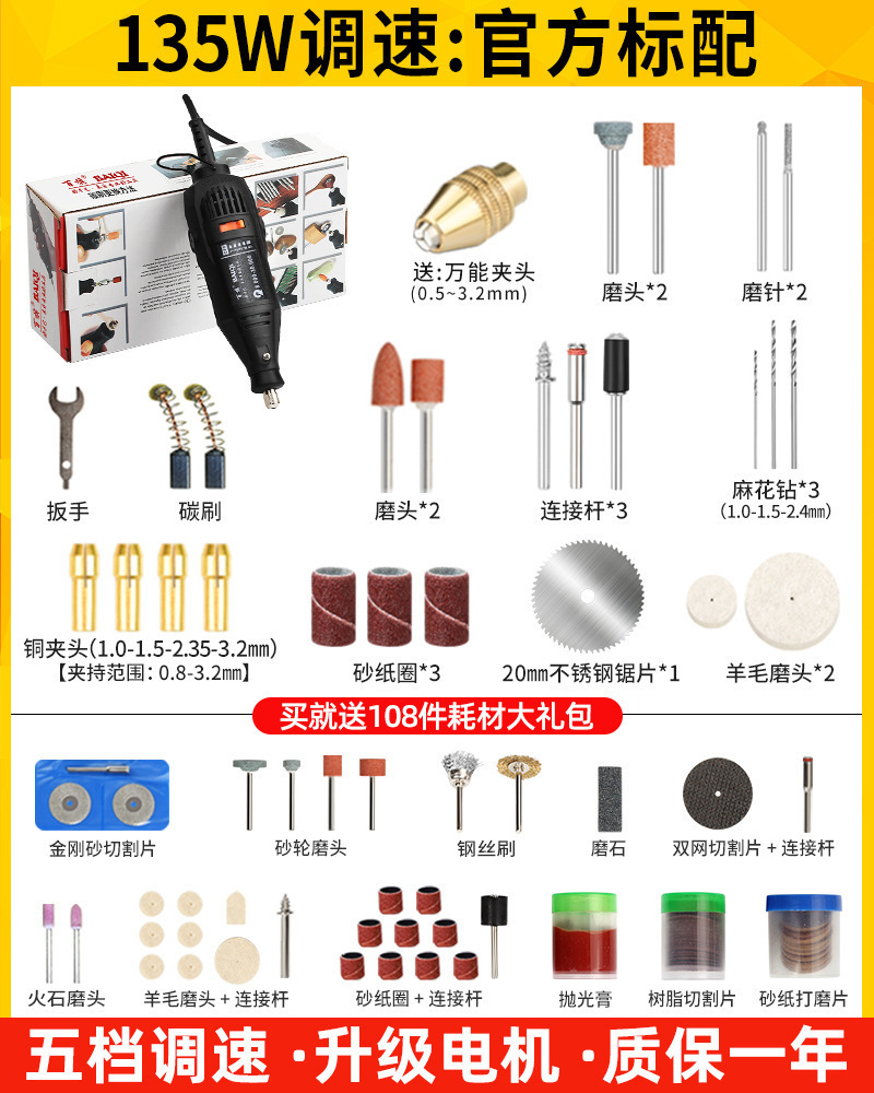 • [플러그인] 135W 속도 조절: 공식 표준 구성 - 무료 척 + 무료 108개 소모품