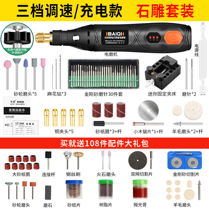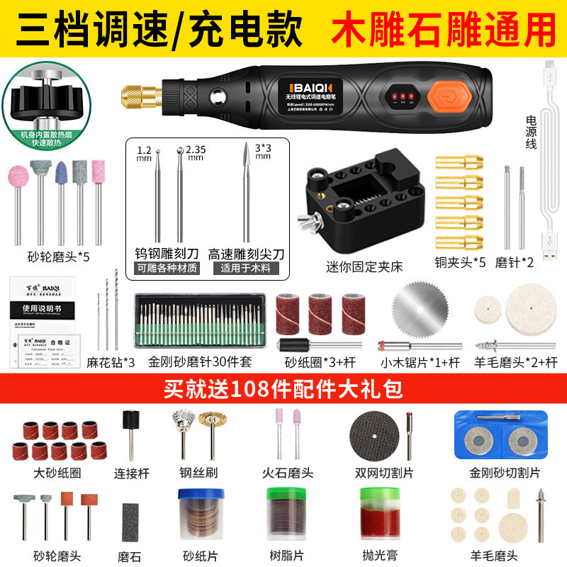 • [충전식 모델] 미니 20W: 목각 및 석각 - 범용 세트 + 무료 소모품 108개