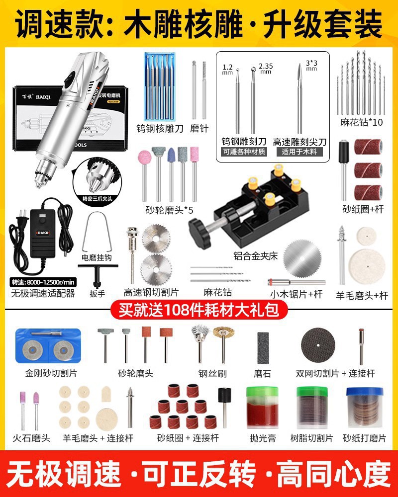 • 속도 조절이 가능한 새로운 모델: 목각 및 핵 조각 업그레이드 세트 + 무료 108pc