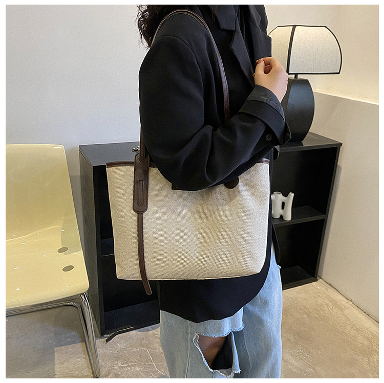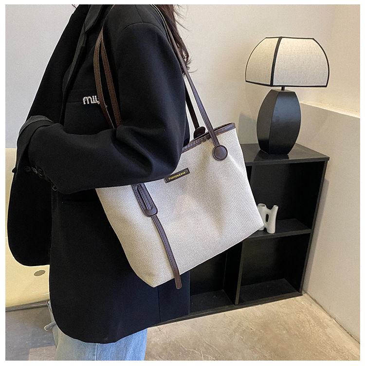 캐주얼 대용량 가방 여성용 가방 2025 신상 다용도 캔버스 가방 출퇴근 및 수업용 심플한 토트백스토어 가기