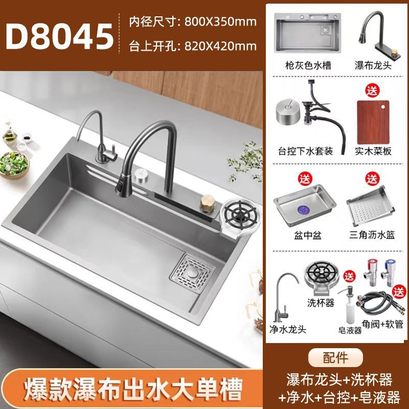 • 80*45【레인댄스 나노 블랙】-컵 와셔가 포함된 풀아웃 수전