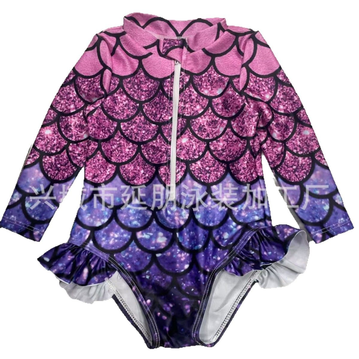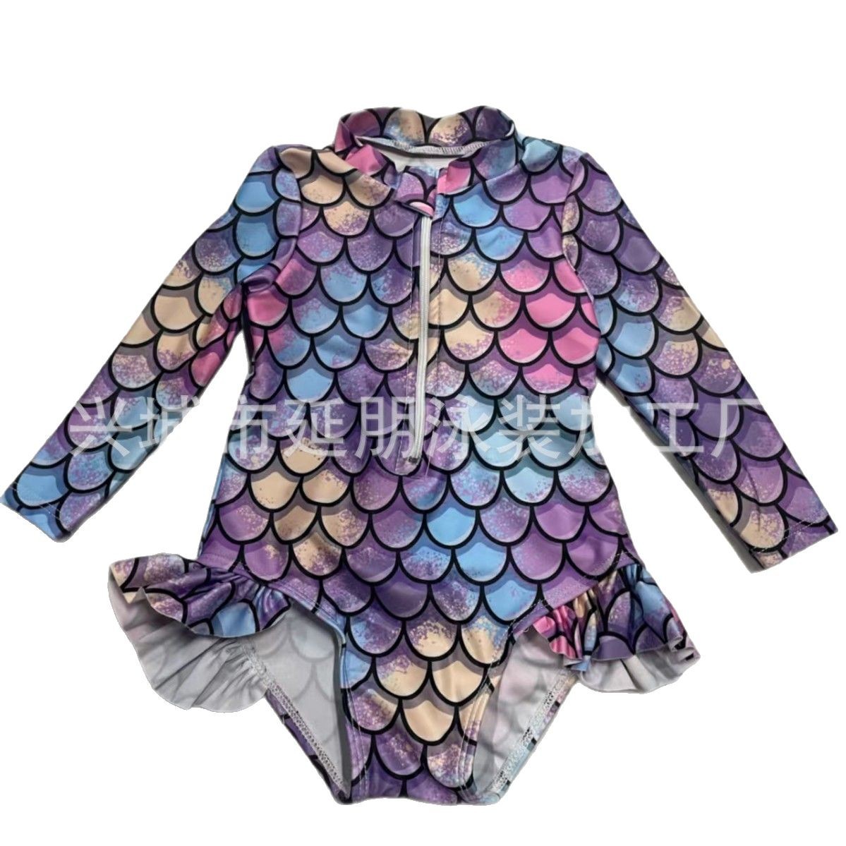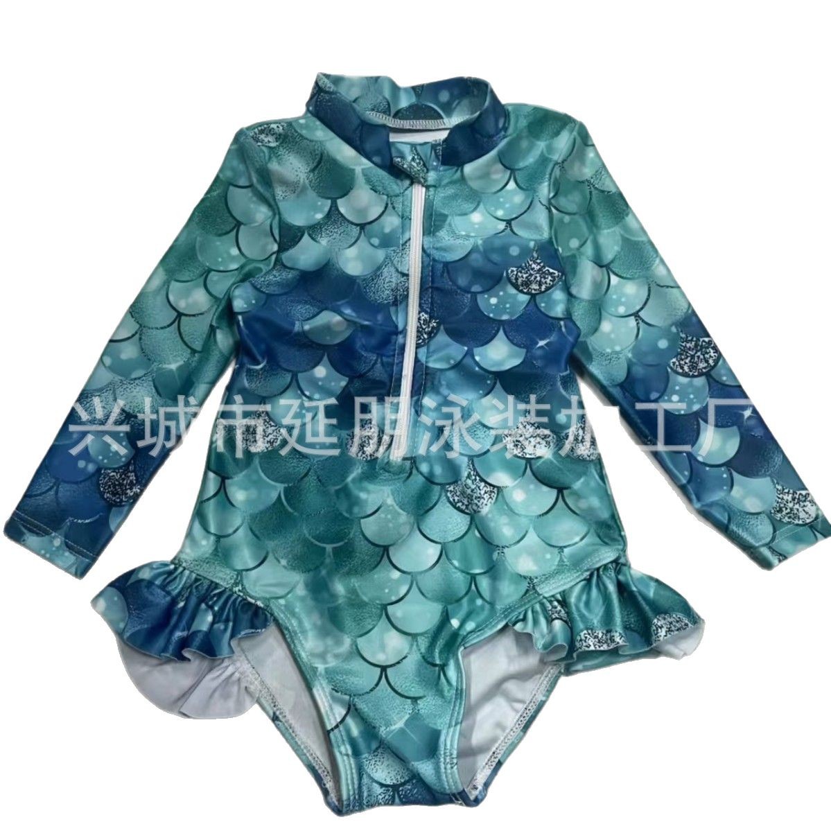 유럽과 미국 국경 새로운 물고기 규모 디지털 인쇄 어린이 긴 소매 원피스 수영복 2-7 세 아기 소년 소녀 수영복