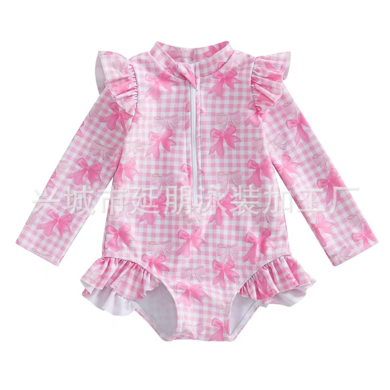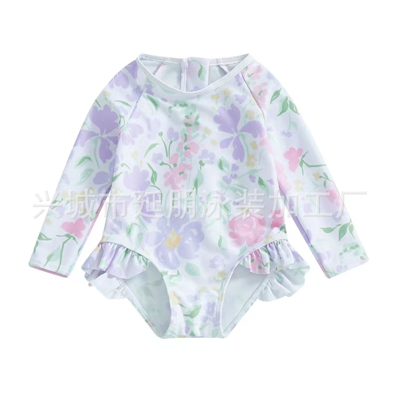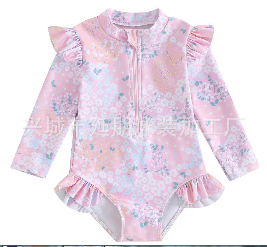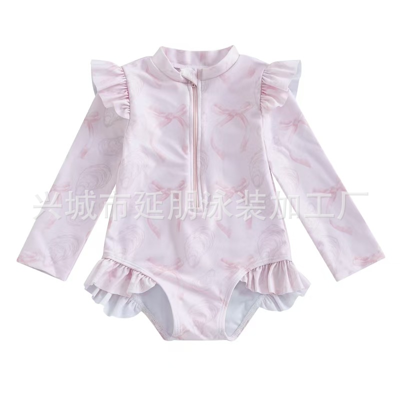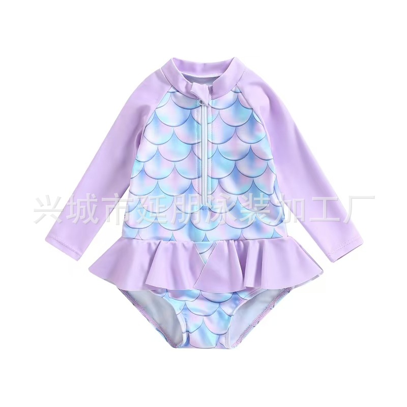 유럽과 미국 국경 새로운 물고기 규모 디지털 인쇄 어린이 긴 소매 원피스 수영복 2-7 세 아기 소년 소녀 수영복
