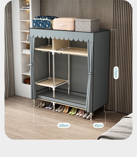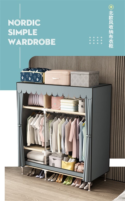 간단한 옷장 천 옷장 강철 파이프 굵게 강화 된 임대 룸 기숙사 단일 천 옷장 보관 랙 옷장