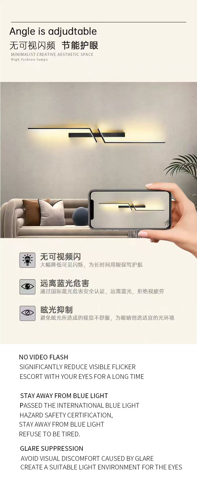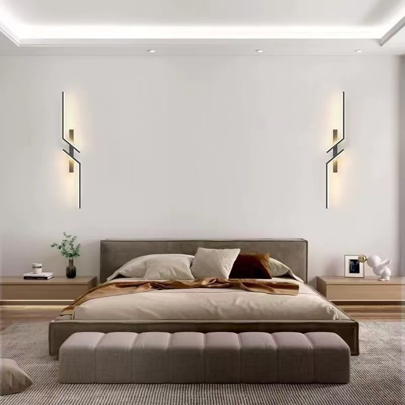 미니멀리스트 긴 벽 램프 led 현대 미니멀 한 침실 침대 옆 램프 복도 거실 그릴 소파 배경 벽 램프