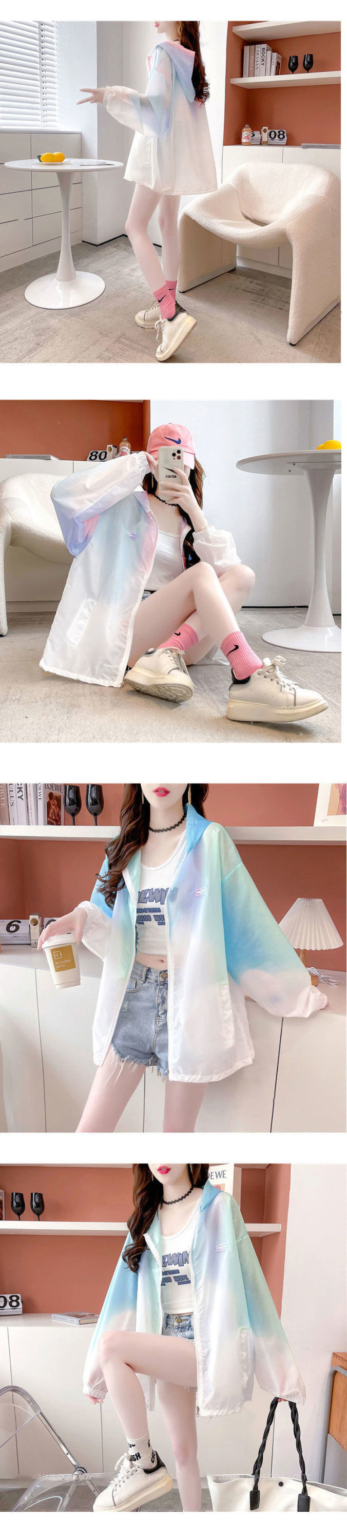 인터넷 연예인 타이-염료 선 스크린 코트 여성의 2025 년 여름 새로운 안티-UV 느슨한 디자인 센스 탑스토어 가기