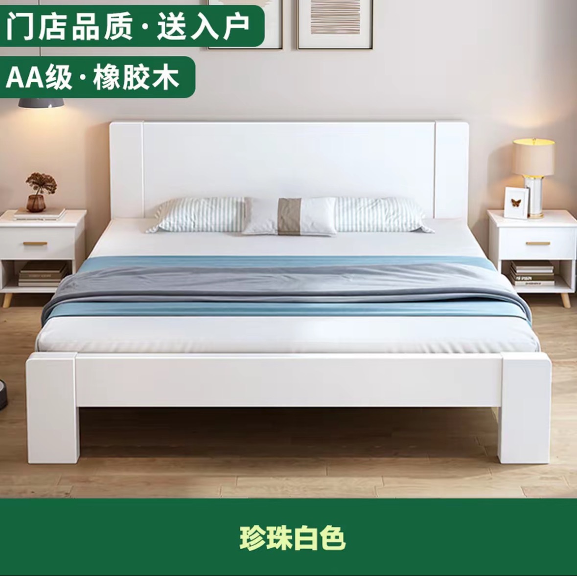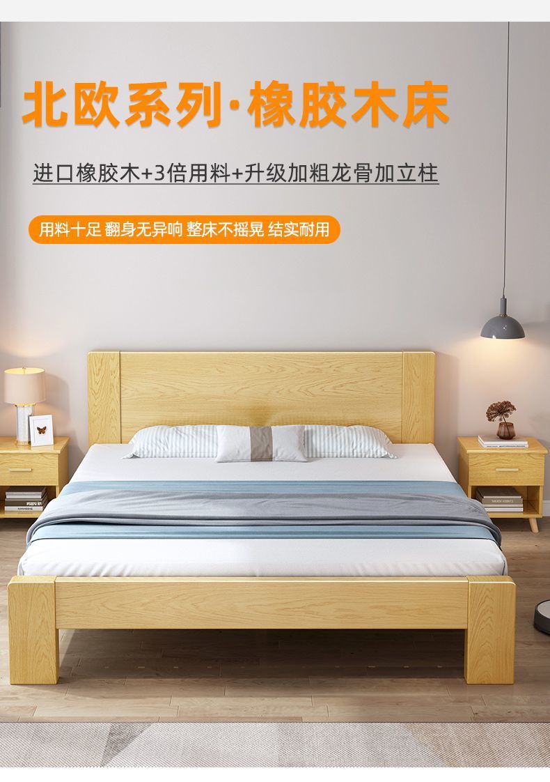 전체 단단한 나무 침대 1.5 m 가정용 현대 간단한 고무 나무 1.8 더블 침대 마스터 침실 1.2m 싱글 어린이 침대 프레임스토어 가기