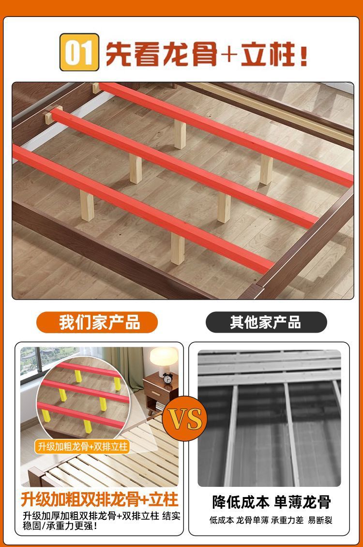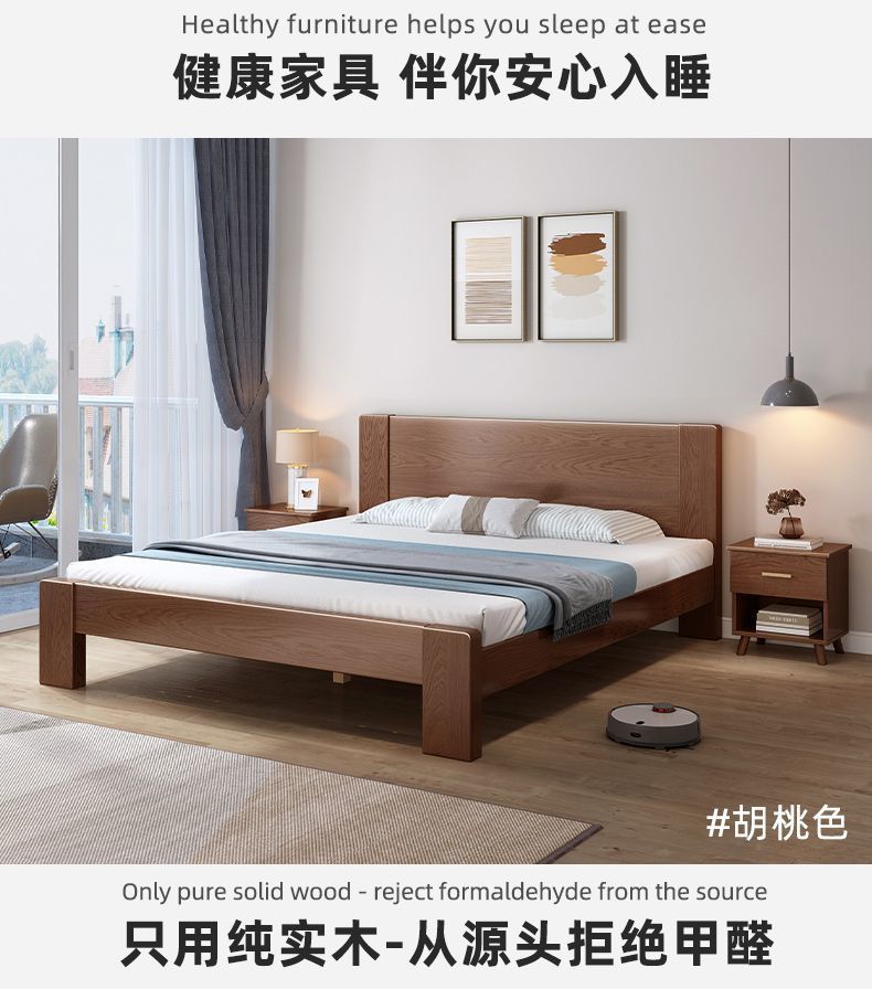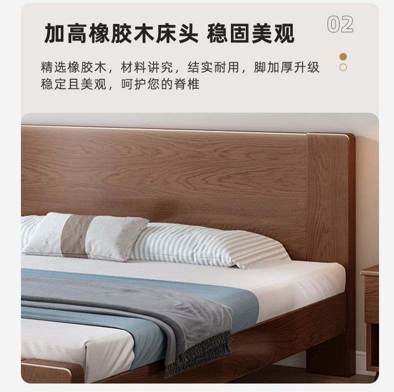 • 【내구성이 뛰어나고 소음이 없음】*호두나무 침대 + 협탁*2