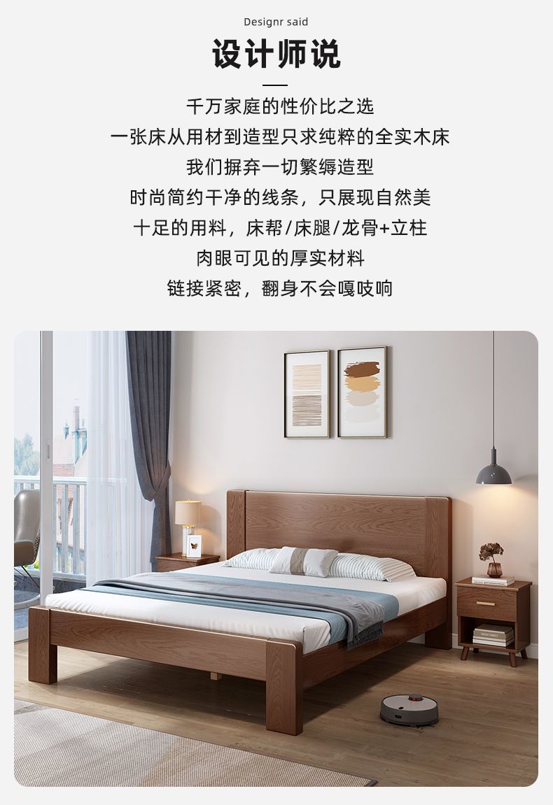 • 【튼튼하고 소음이 없음】*호두나무 침대 + 협탁*1