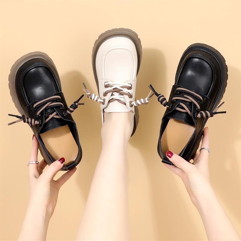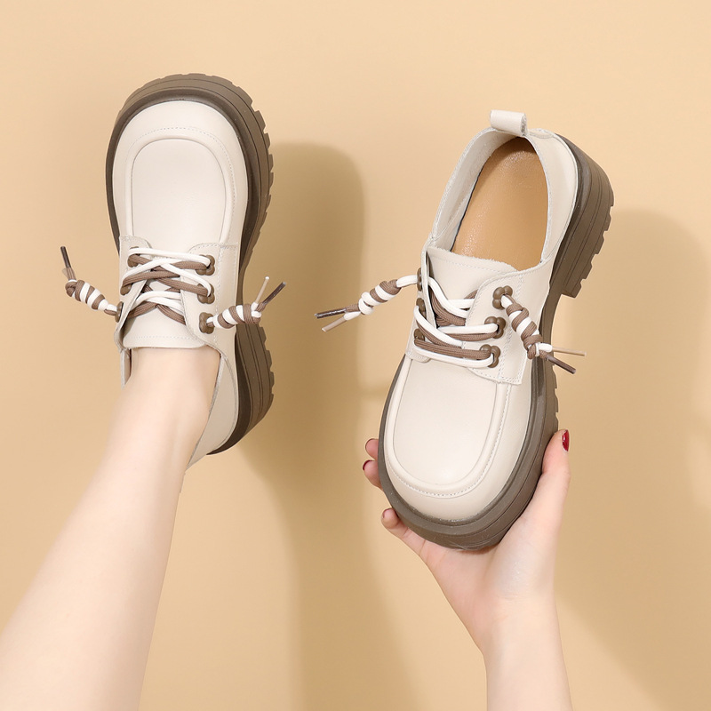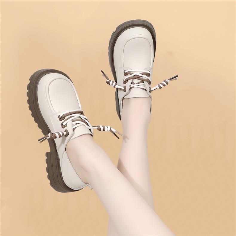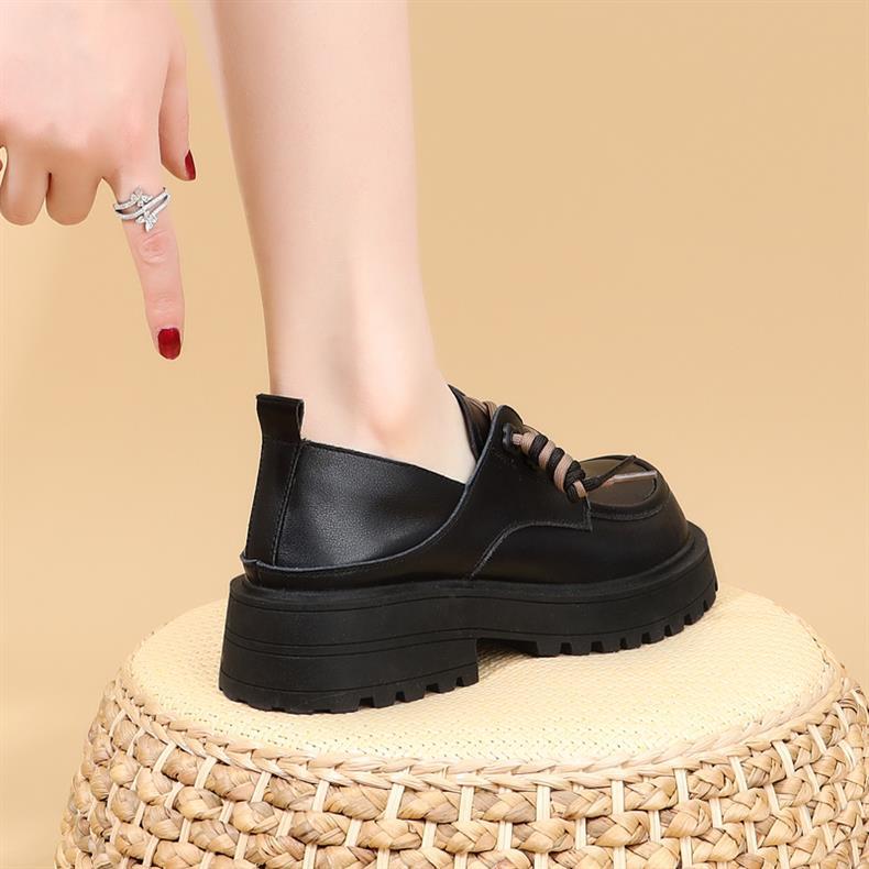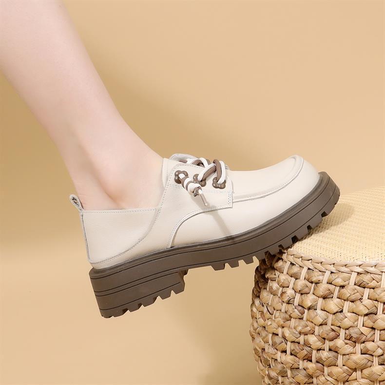 영국 스타일 정품 가죽 신발 여성 스커트 2025 봄과 가을 새로운 두꺼운 로퍼 화이트 플러스 사이즈 신발스토어 가기