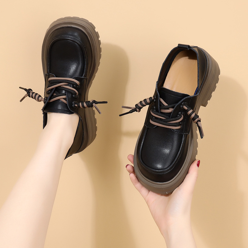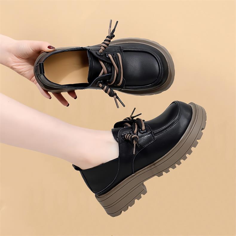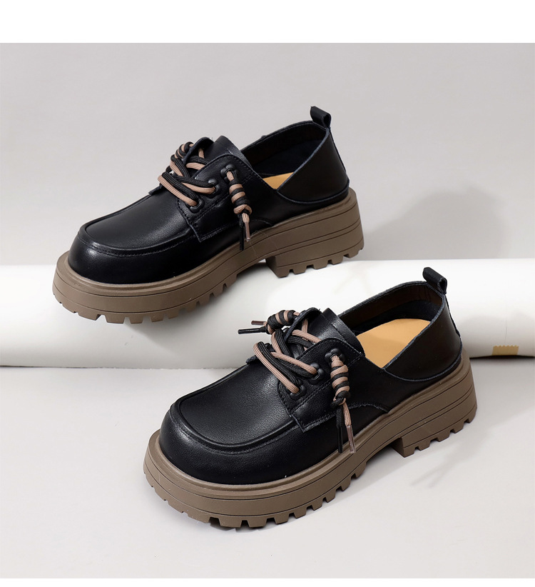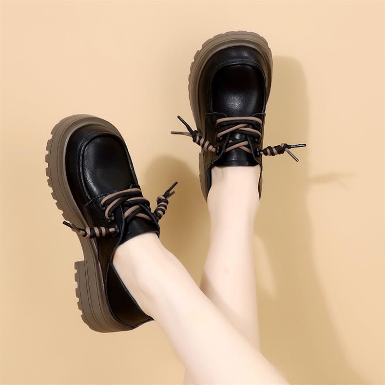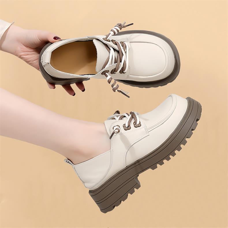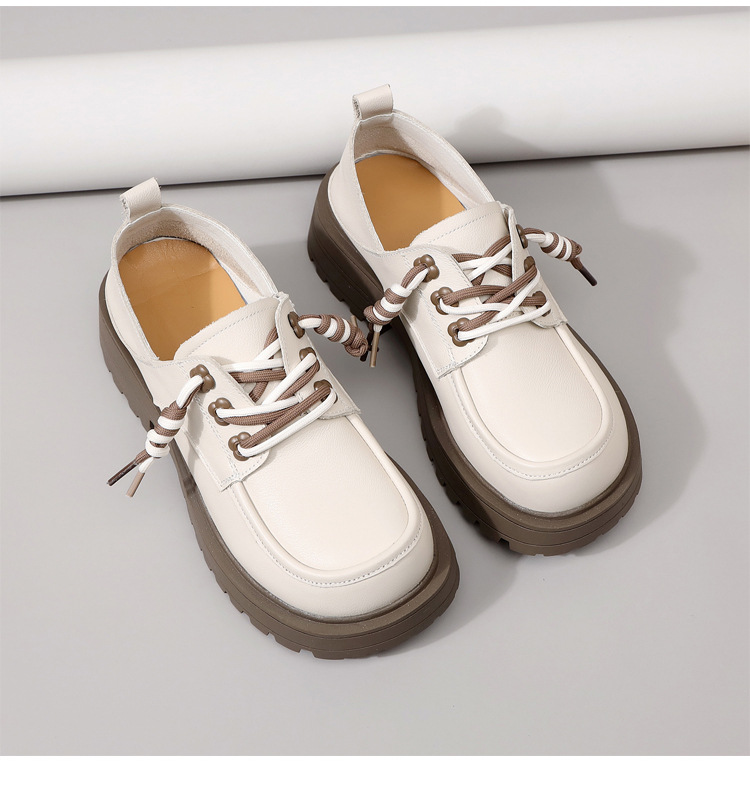 영국 스타일 정품 가죽 신발 여성 스커트 2025 봄과 가을 새로운 두꺼운 로퍼 화이트 플러스 사이즈 신발스토어 가기