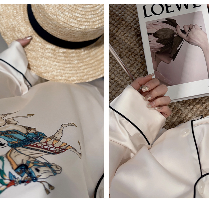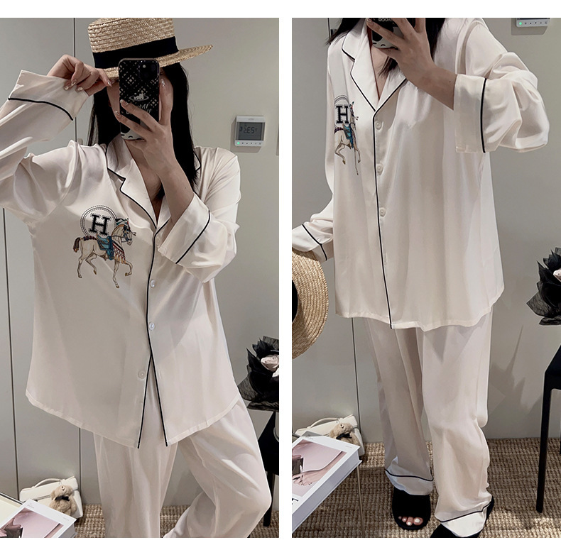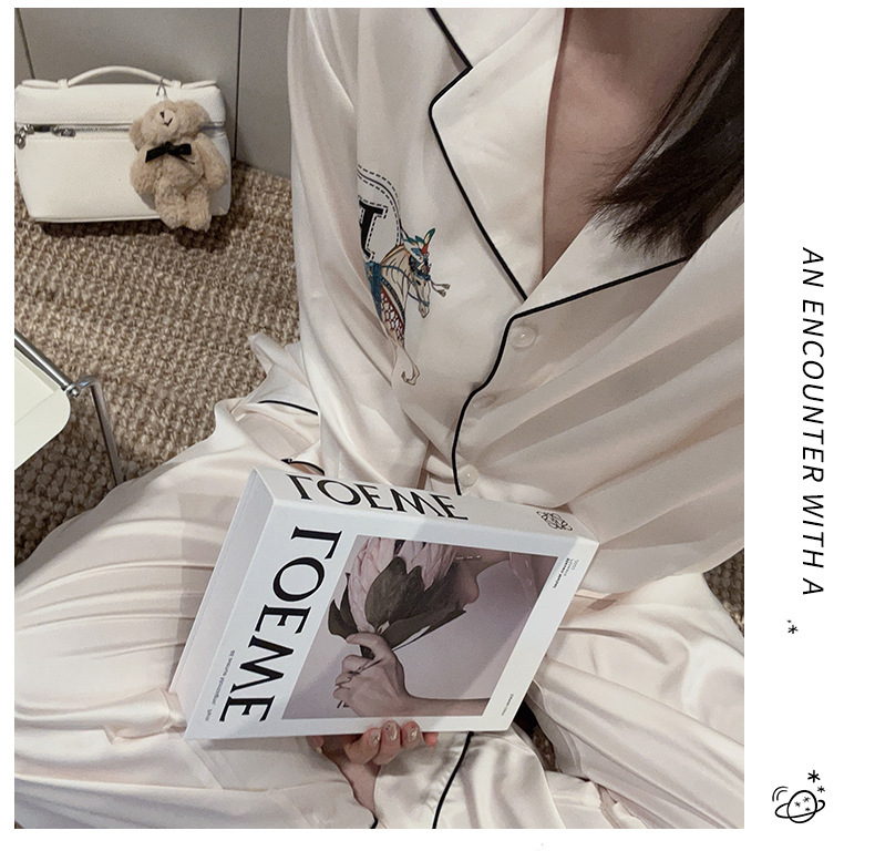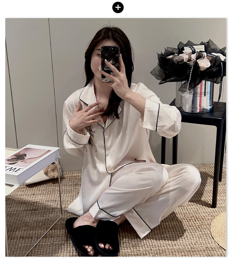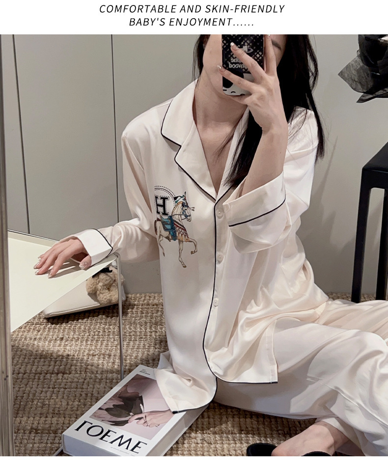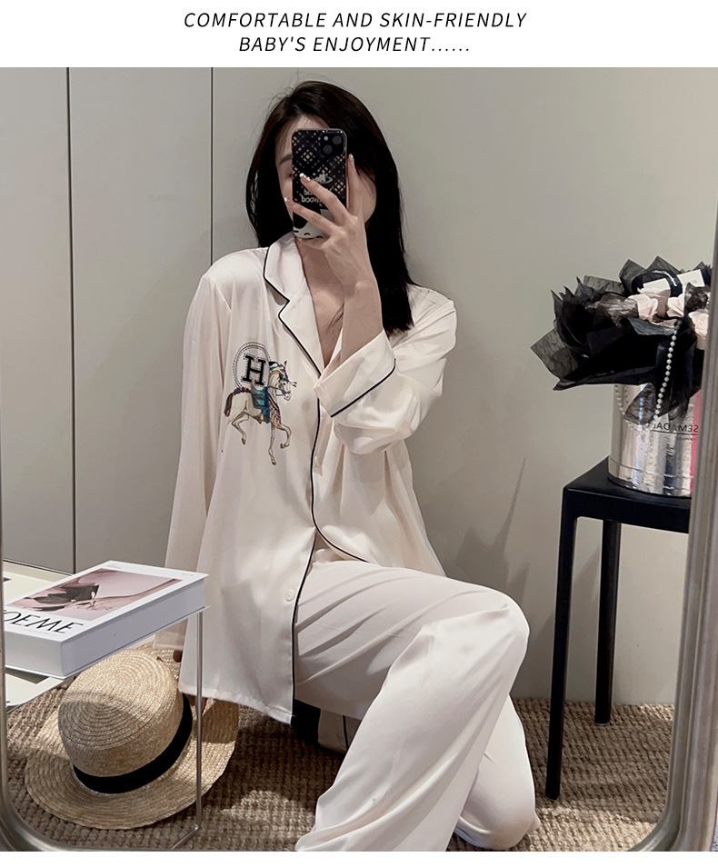 2025 남성과 여성을 위한 새로운 통기성 얼음 실크 커플 잠옷, 가벼운 고급 긴팔 바지, 가정복, 2피스 세트, 야외에서 착용 가능