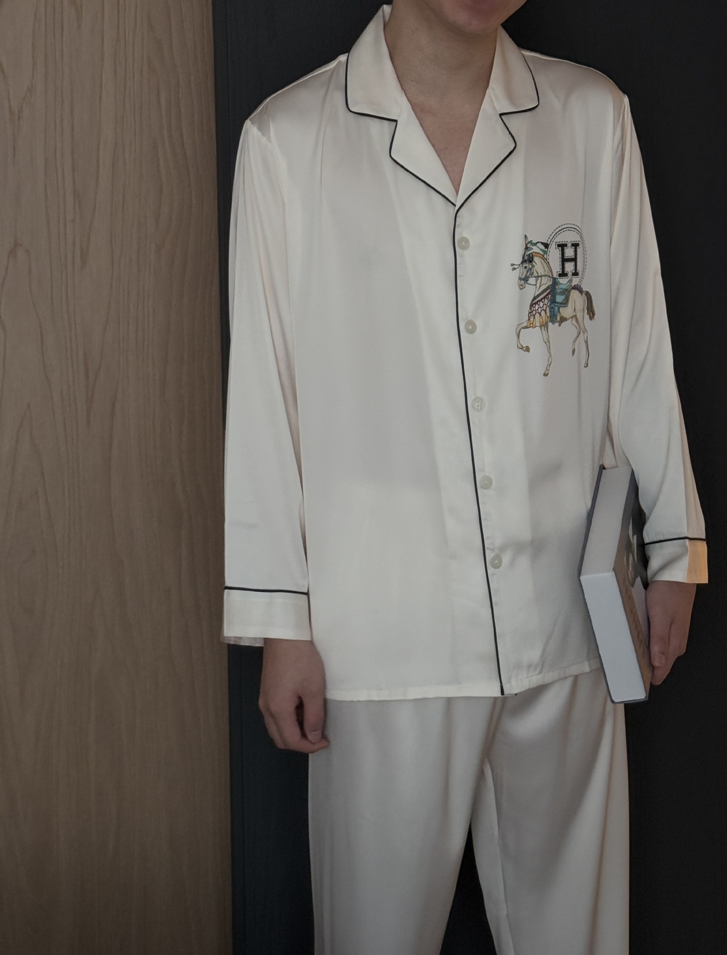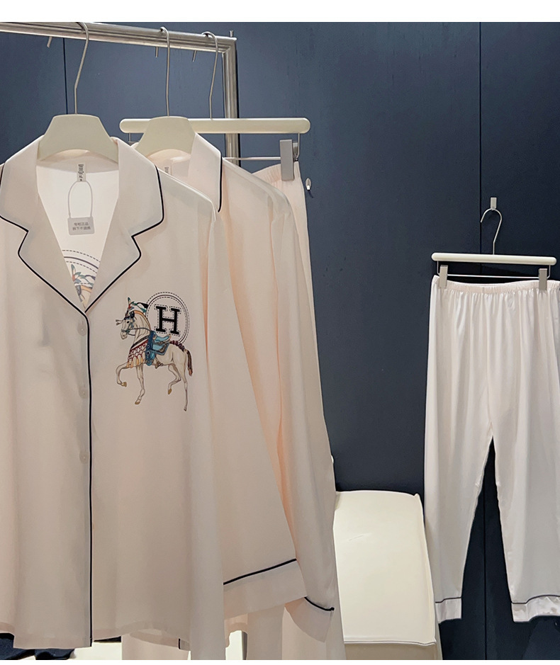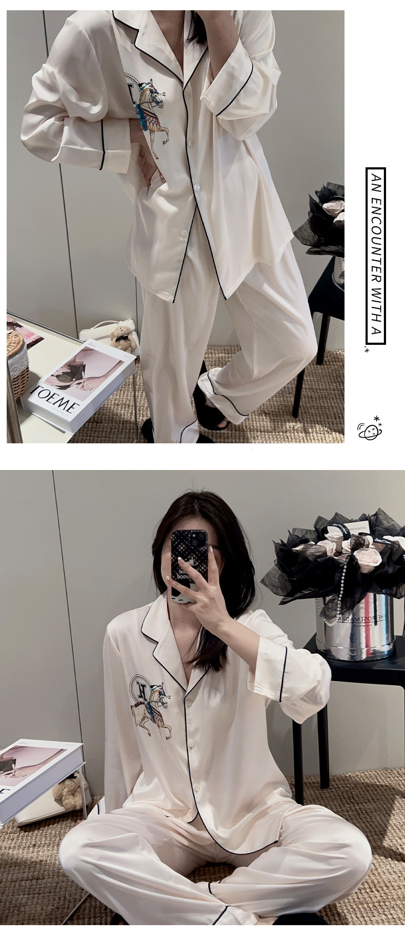 2025 남성과 여성을 위한 새로운 통기성 얼음 실크 커플 잠옷, 가벼운 고급 긴팔 바지, 가정복, 2피스 세트, 야외에서 착용 가능스토어 가기