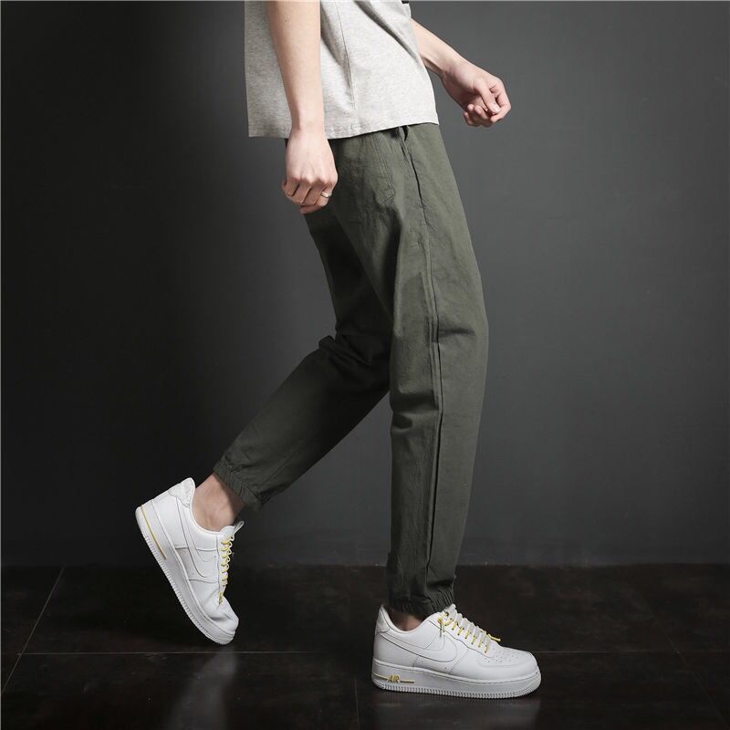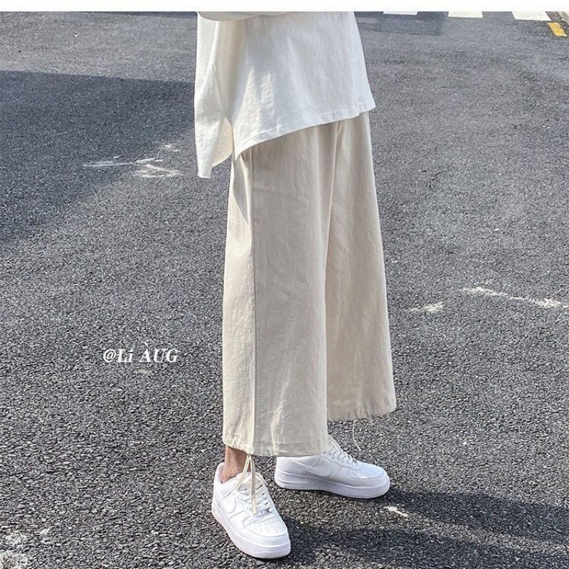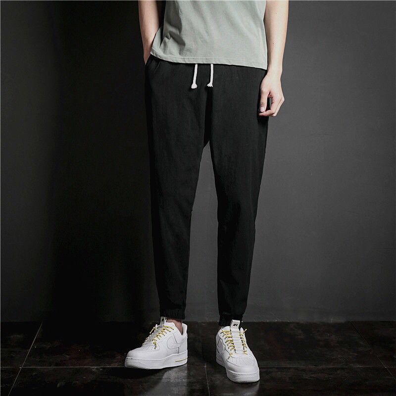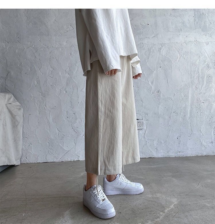 넓은 다리 바지 남자 얇은 여름 새로운 스트레이트 코튼 및 리넨 바지 남자 학생 한국 스타일 느슨한 슬리밍 자른 캐주얼 바지