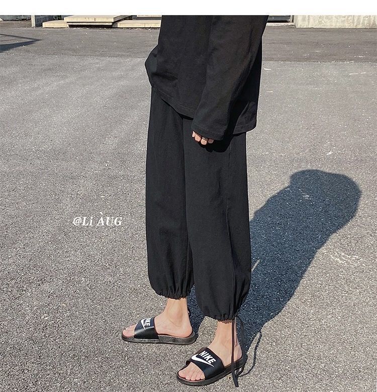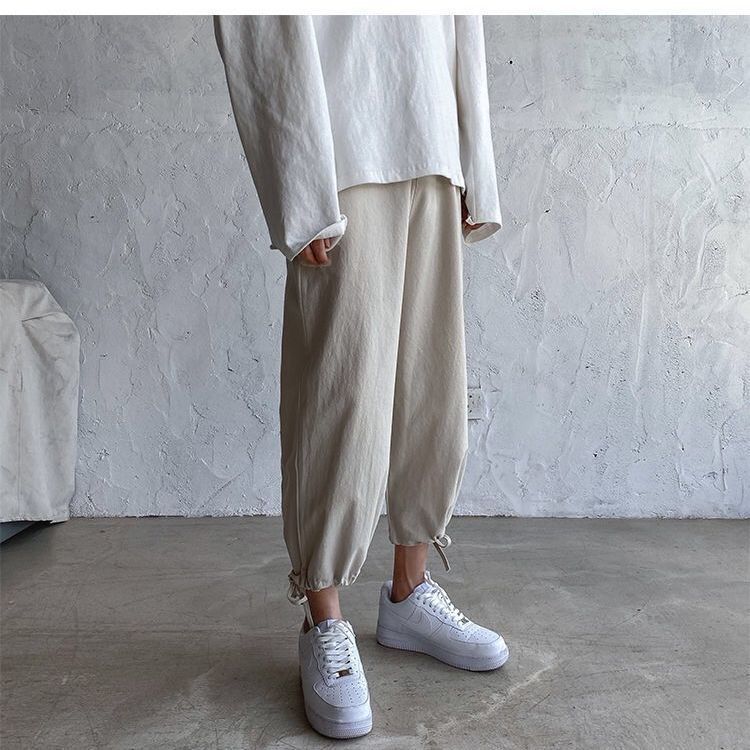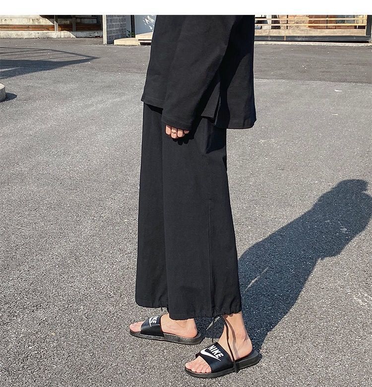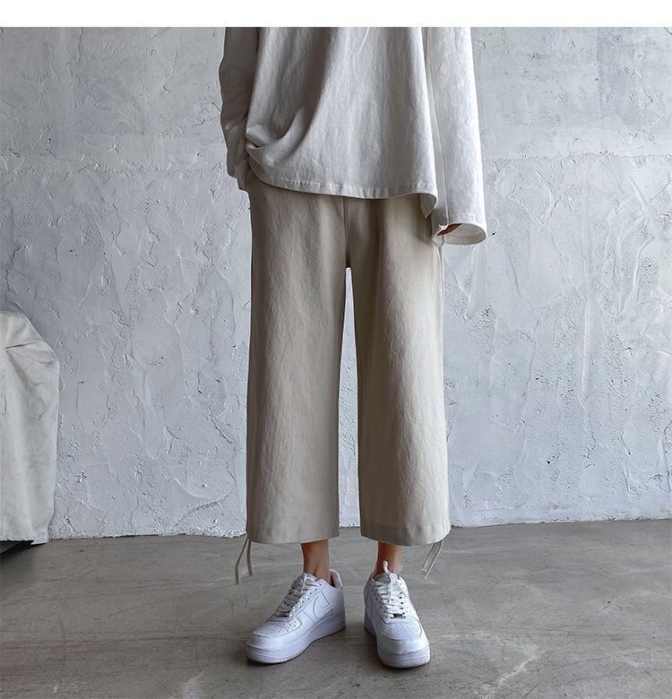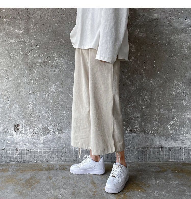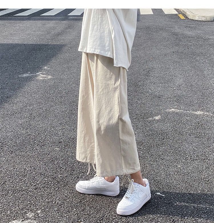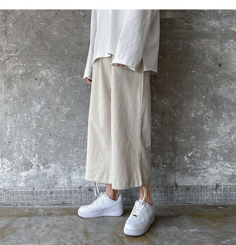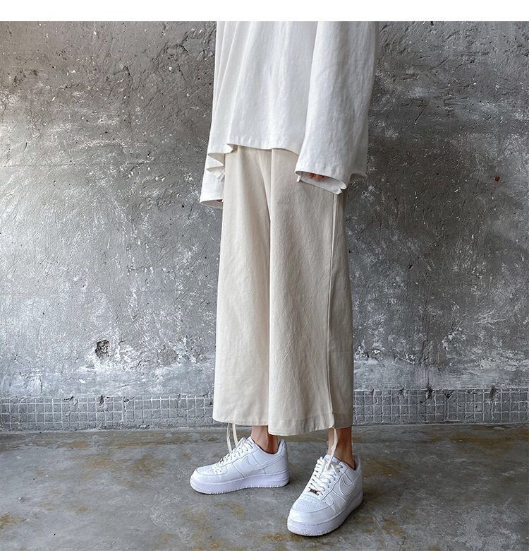 넓은 다리 바지 남자 얇은 여름 새로운 스트레이트 코튼 및 리넨 바지 남자 학생 한국 스타일 느슨한 슬리밍 자른 캐주얼 바지스토어 가기