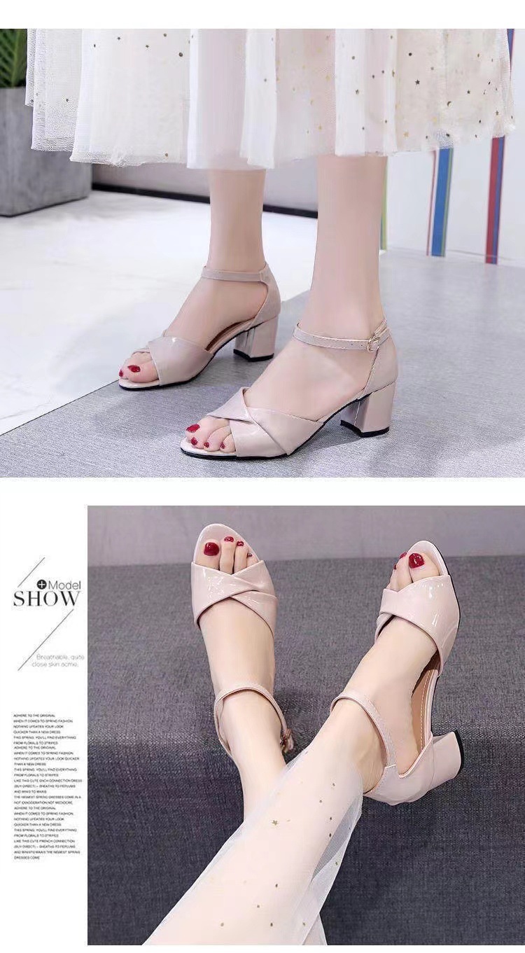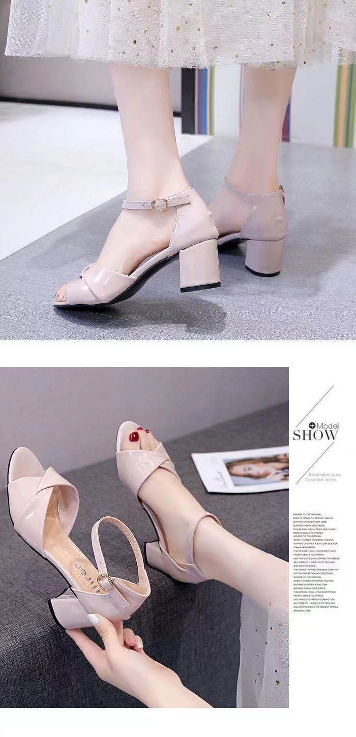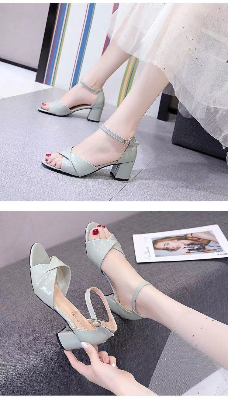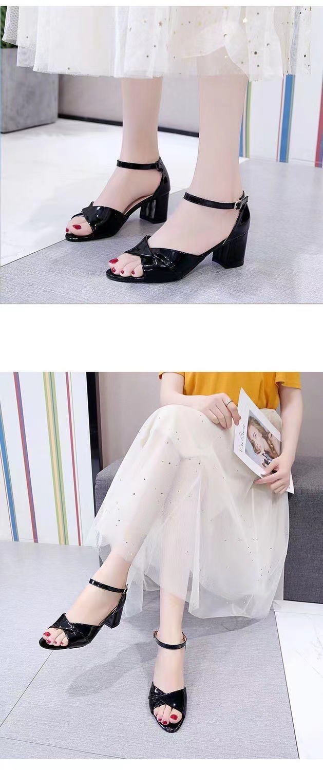 2025 년 여름 새로운 여자 샌들 여자 로우 힐 오픈 토이 두꺼운 힐 올 매치 소프트 가죽 외출 어머니의 샌들 버클스토어 가기