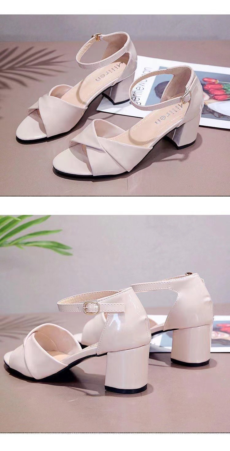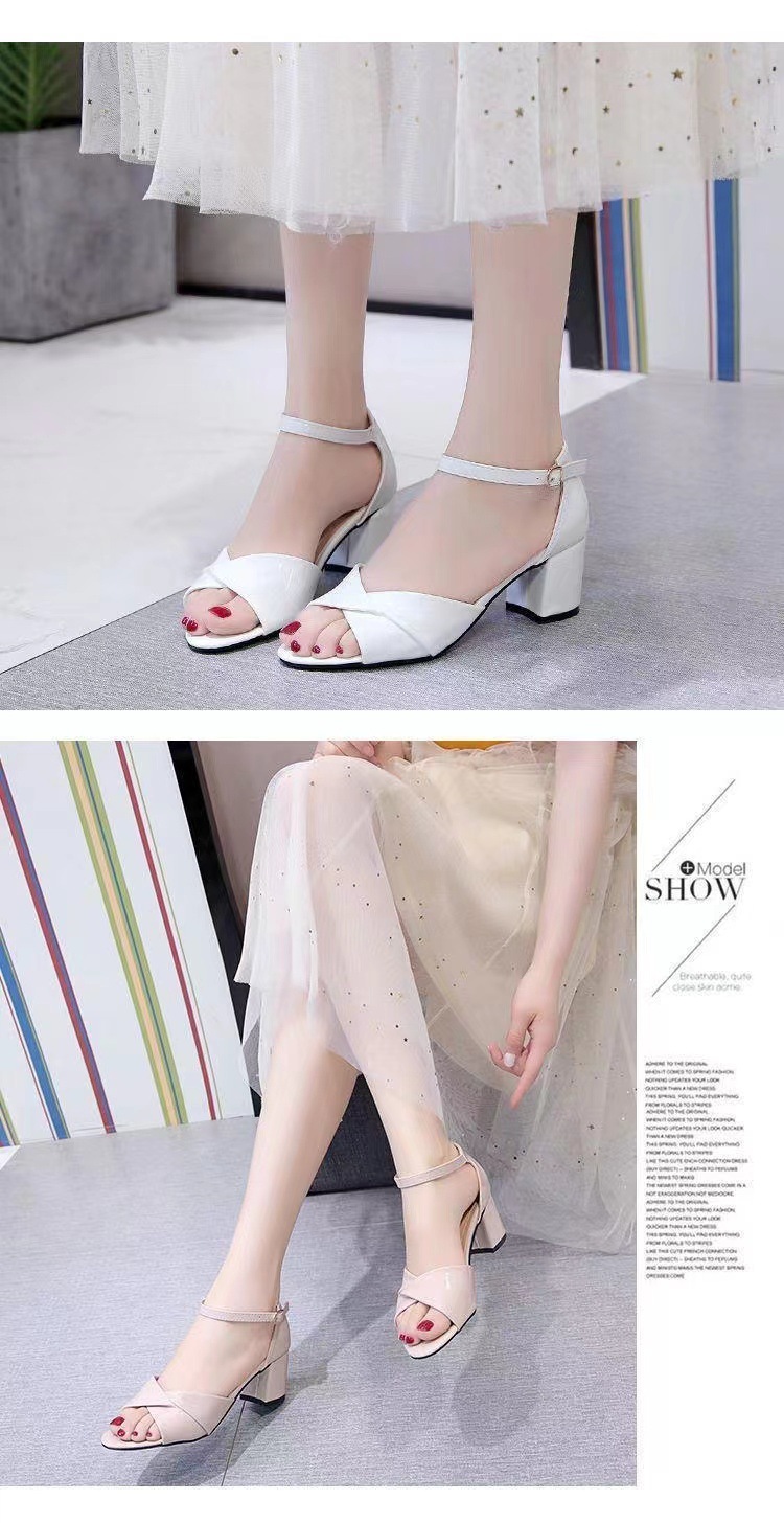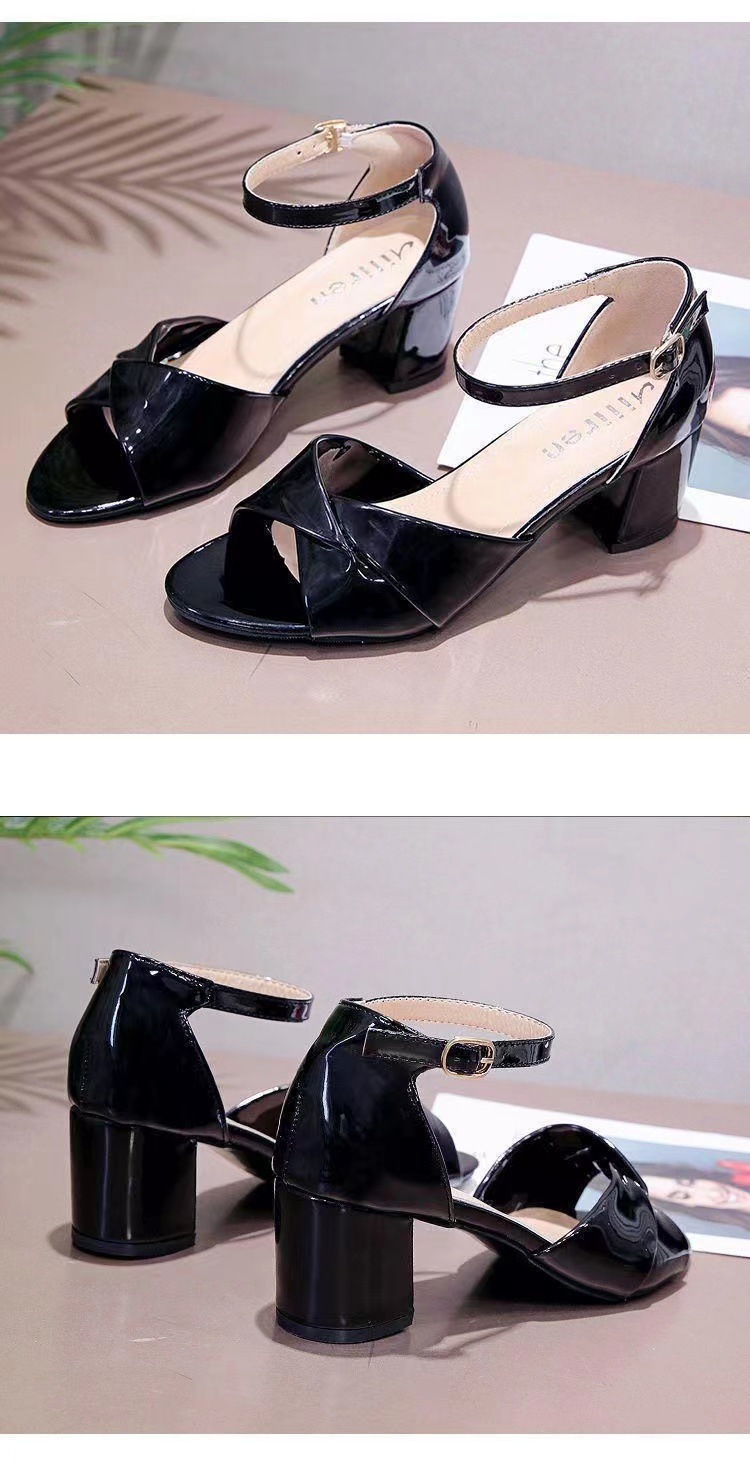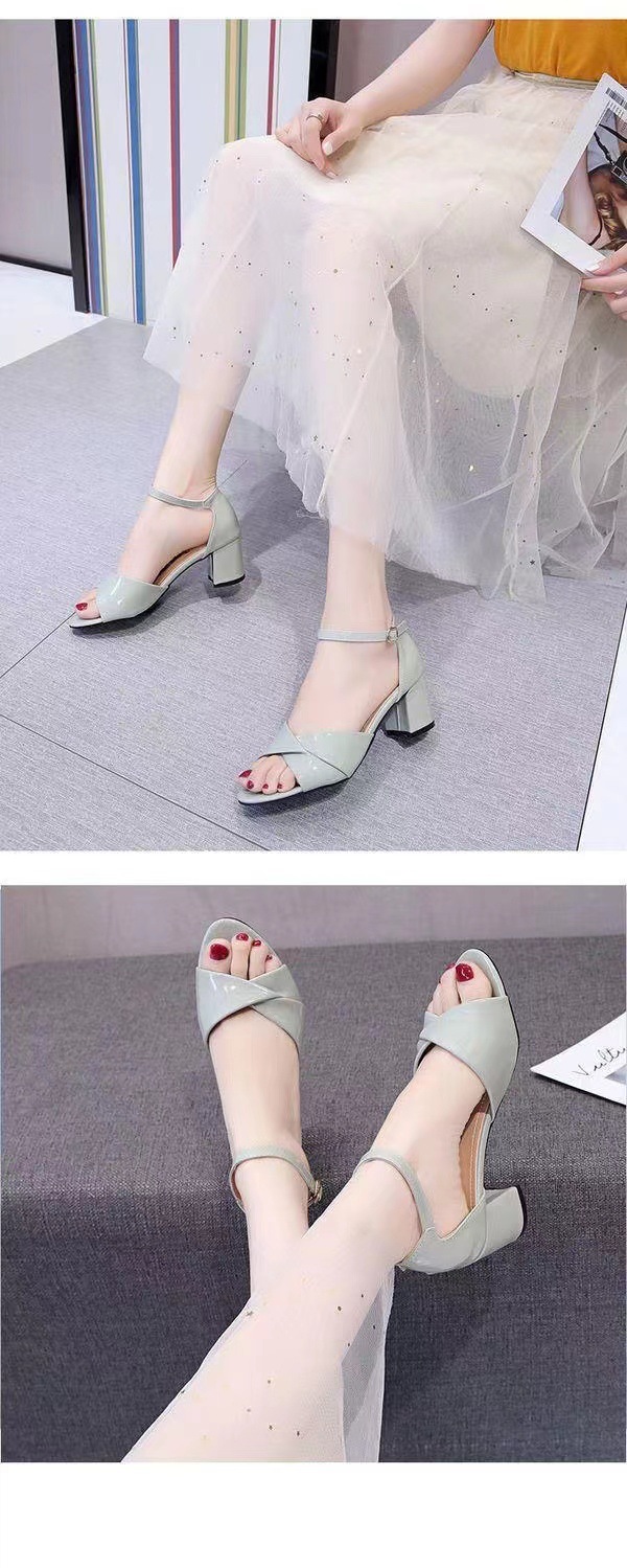 2025 년 여름 새로운 여자 샌들 여자 로우 힐 오픈 토이 두꺼운 힐 올 매치 소프트 가죽 외출 어머니의 샌들 버클스토어 가기