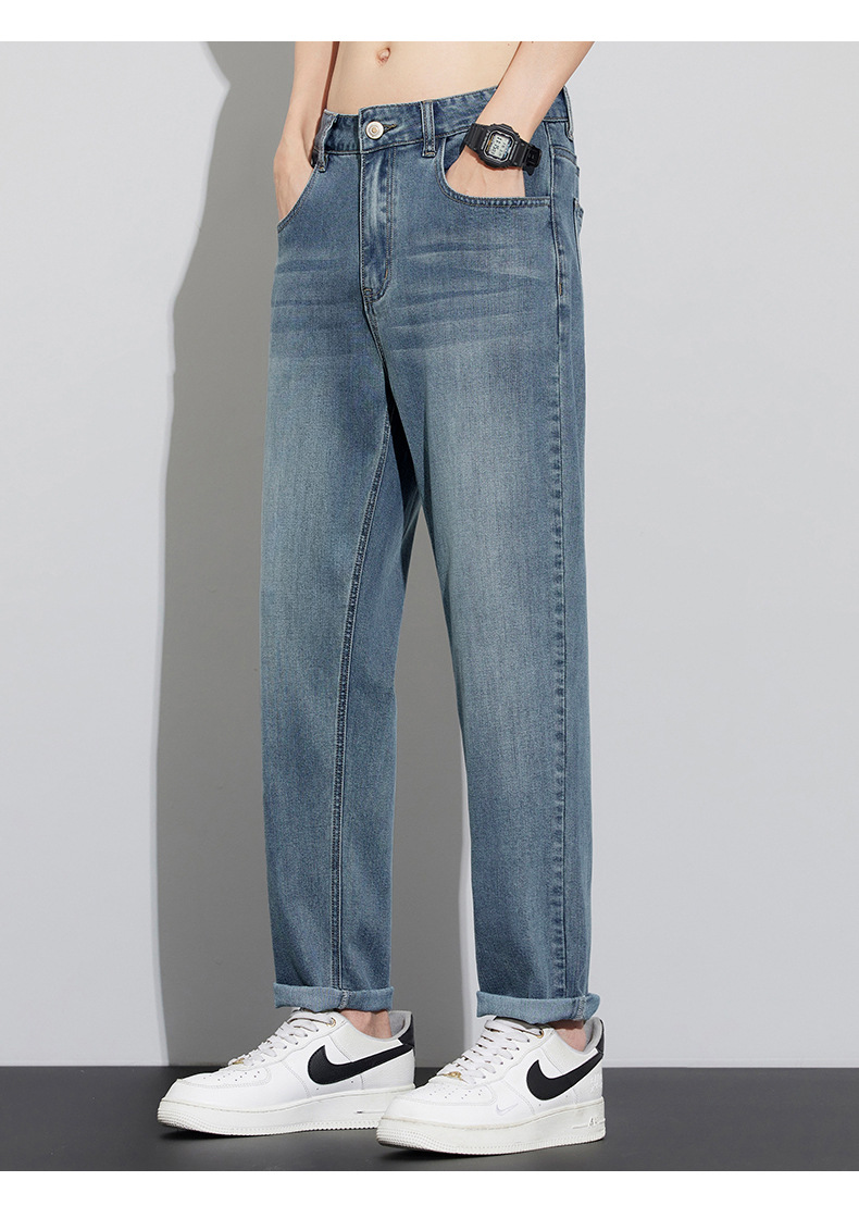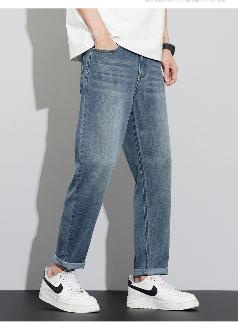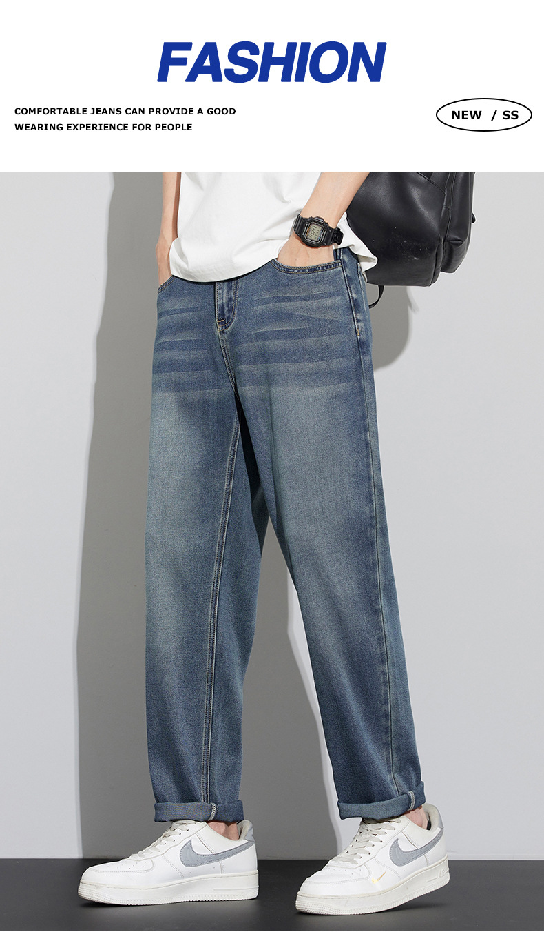 Tencel Jeans 남성 2025 새로운 패션 브랜드 여름 얇은 느슨한 스트레이트 스트레치 테이퍼 캐주얼 긴 바지스토어 가기