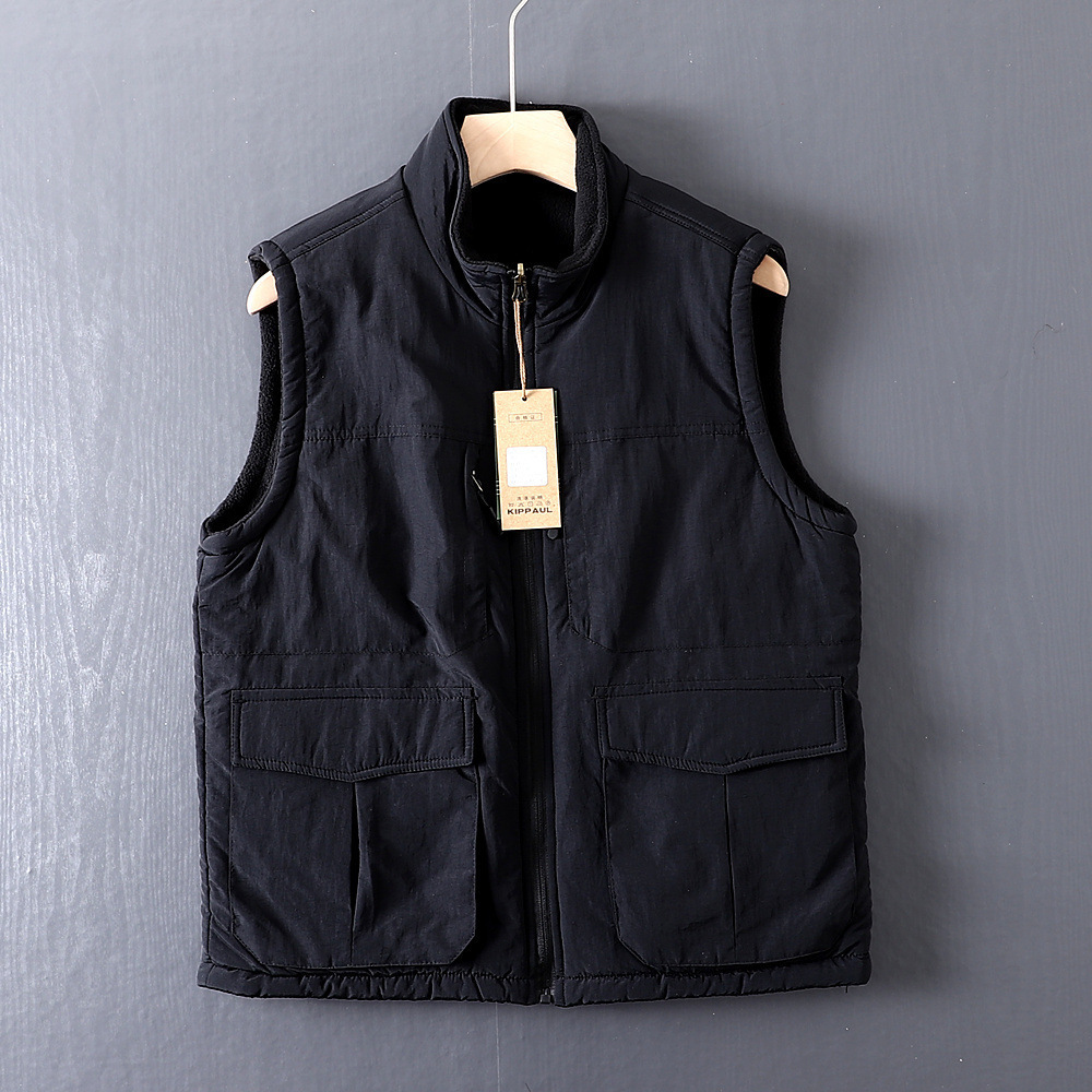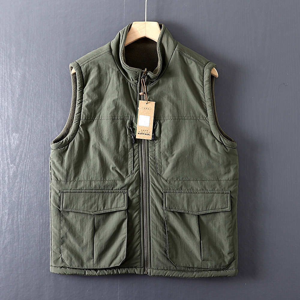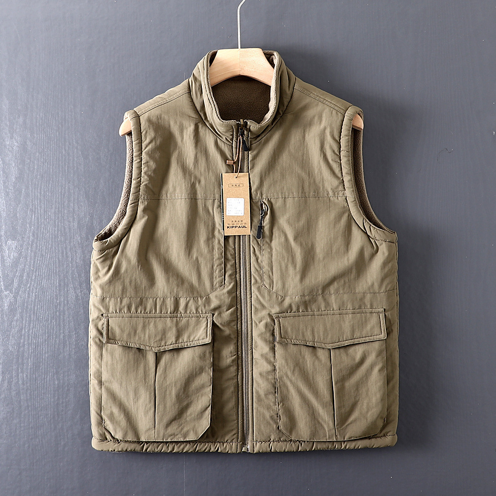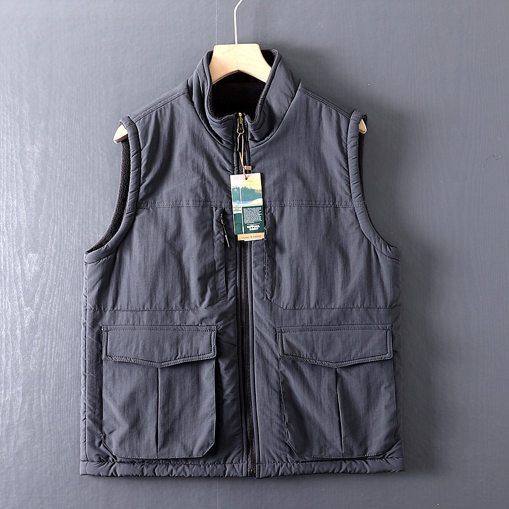 아메리칸 스타일 따뜻한 기모 조끼 수직 칼라 겨울 양면 양털 조끼 남자 외부 착용 하이 엔드 작업복스토어 가기