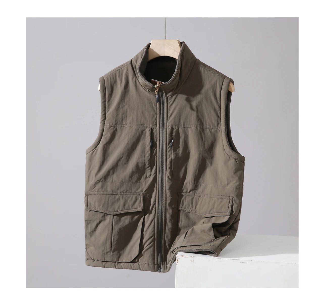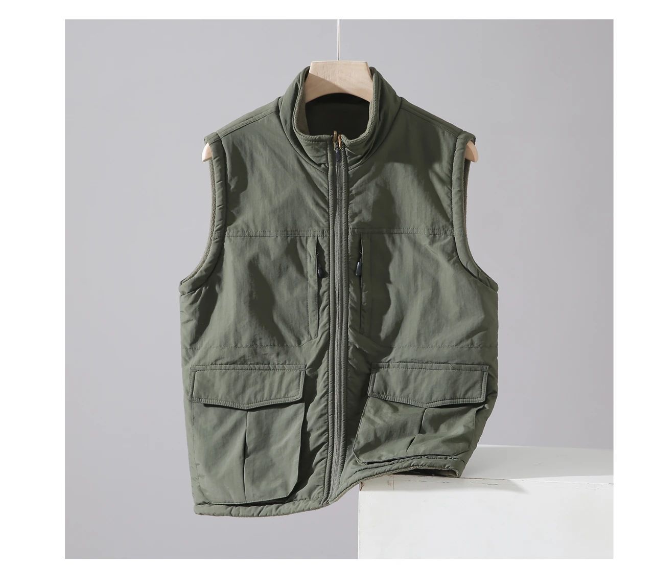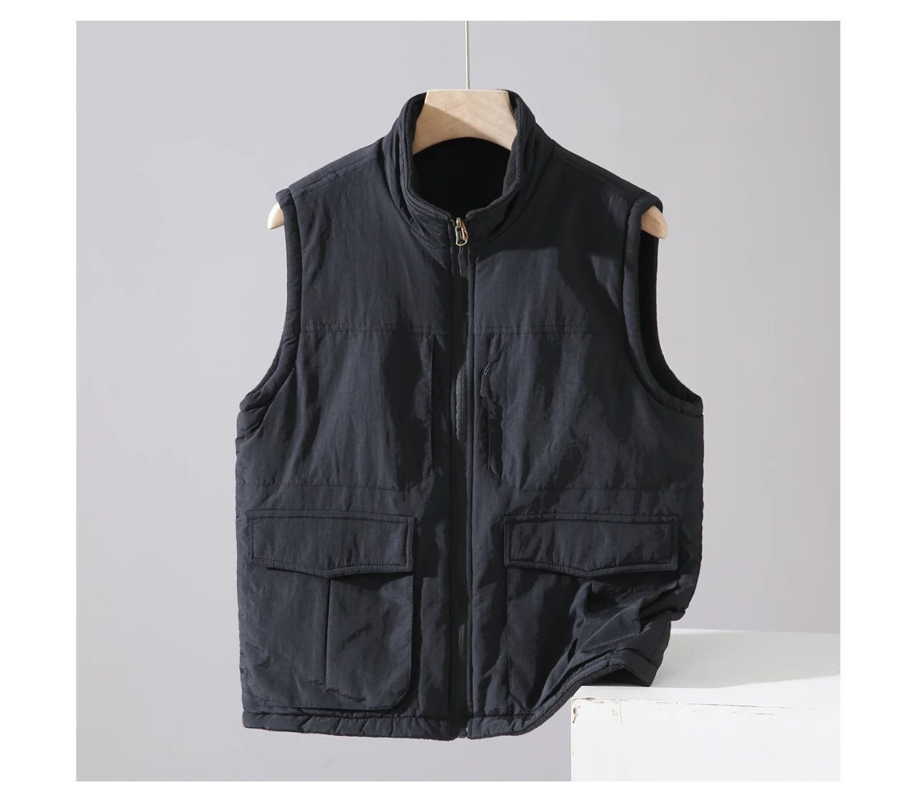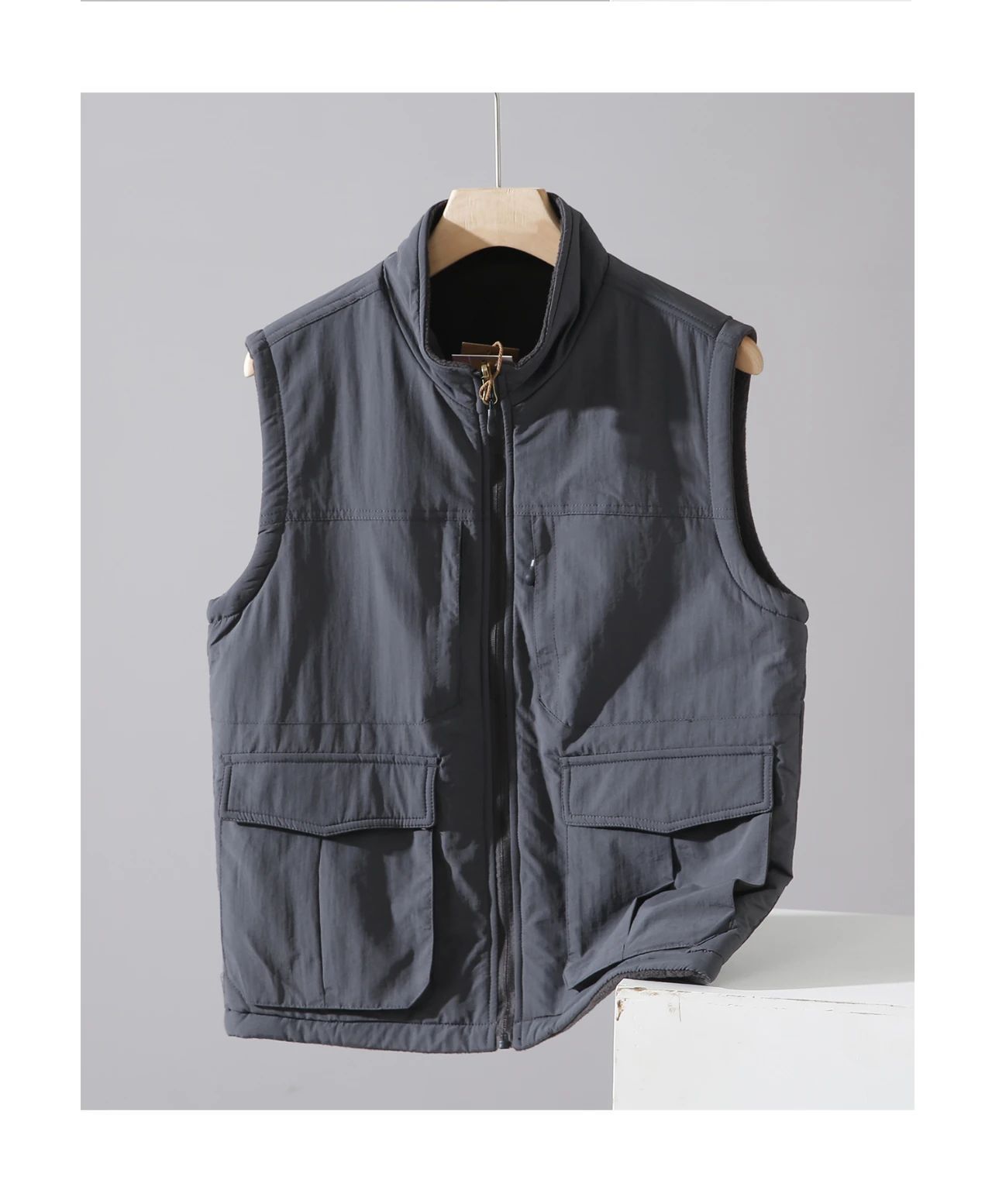 아메리칸 스타일 따뜻한 기모 조끼 수직 칼라 겨울 양면 양털 조끼 남자 외부 착용 하이 엔드 작업복스토어 가기