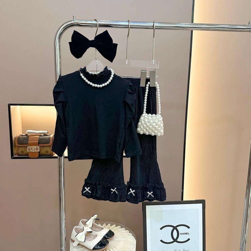• 블랙 퍼프소매 이너웨어 + 블랙 리본 플레어 팬츠