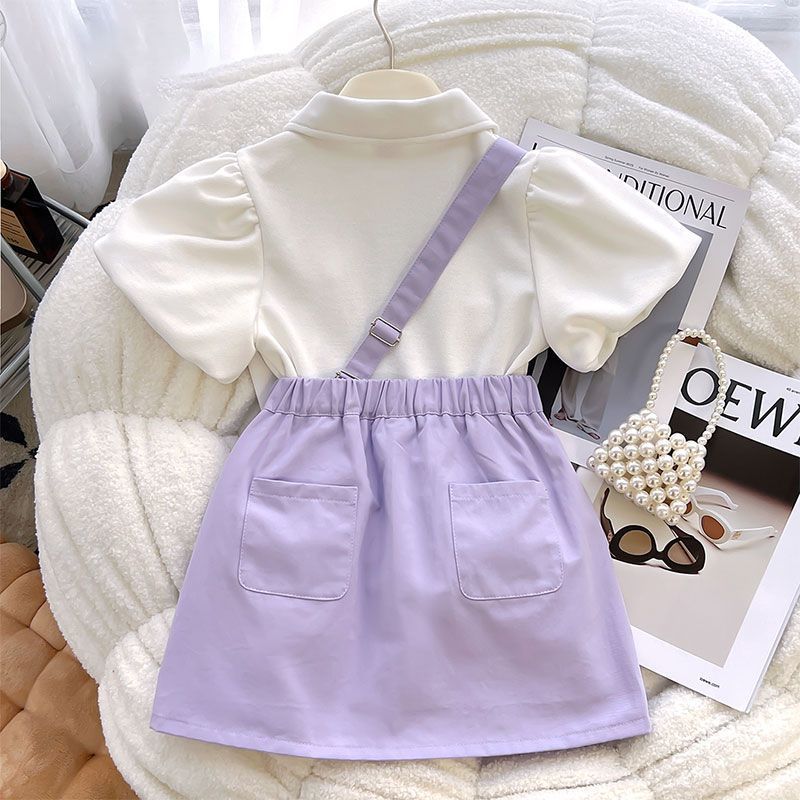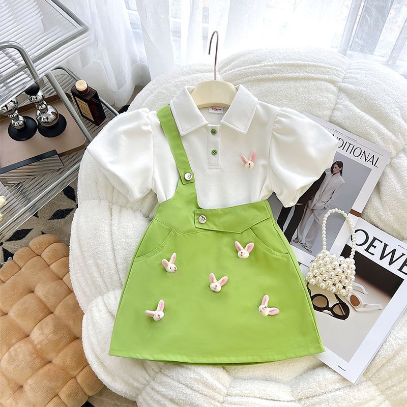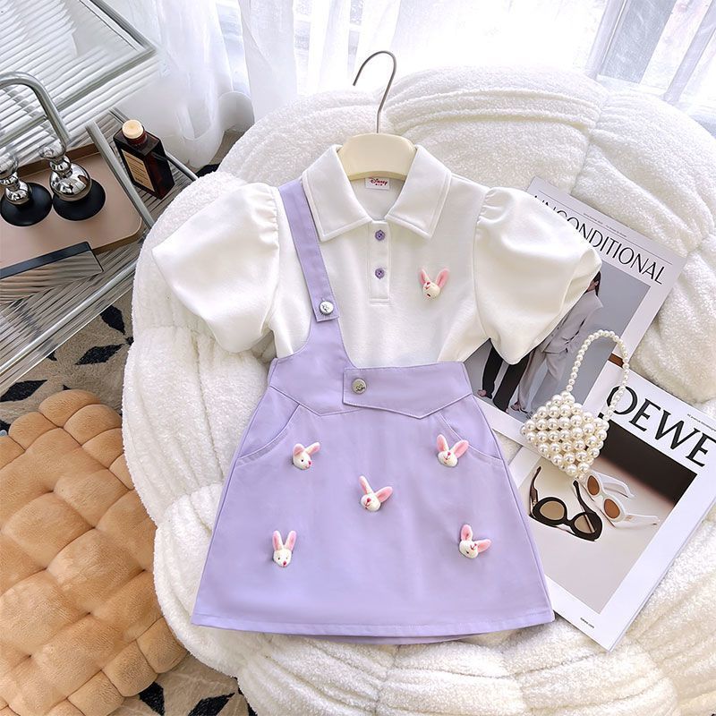 소녀 세트 원피스 2025 년 여름 새로운 어린이 세련된 반팔 티셔츠 소녀 여름 유행 투피스 스커트 세트