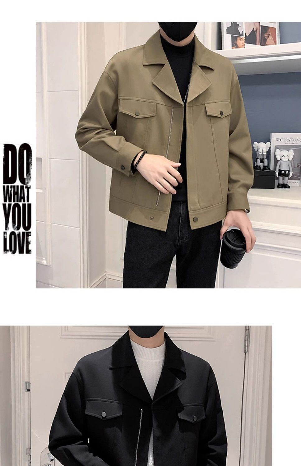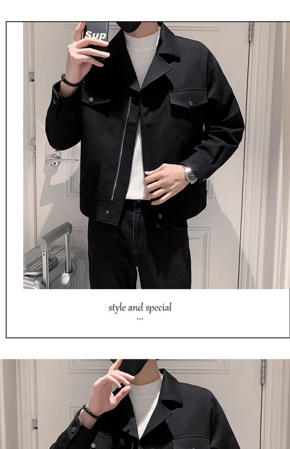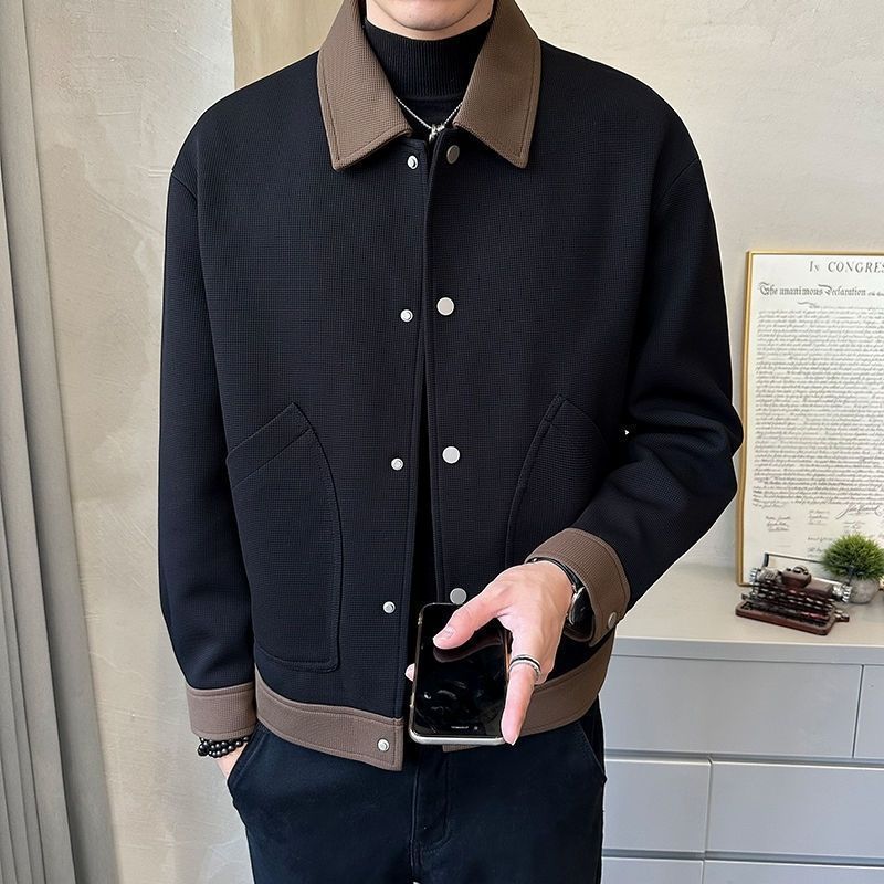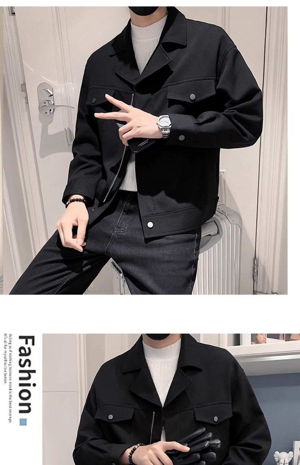 2024 가을과 겨울 새로운 유행 캐주얼 재킷 남자의 유행 브랜드 짧은 재킷 유행과 잘 생긴 스퀘어 칼라 외부 착용 탑스토어 가기