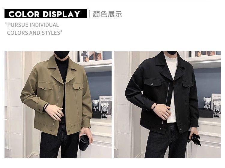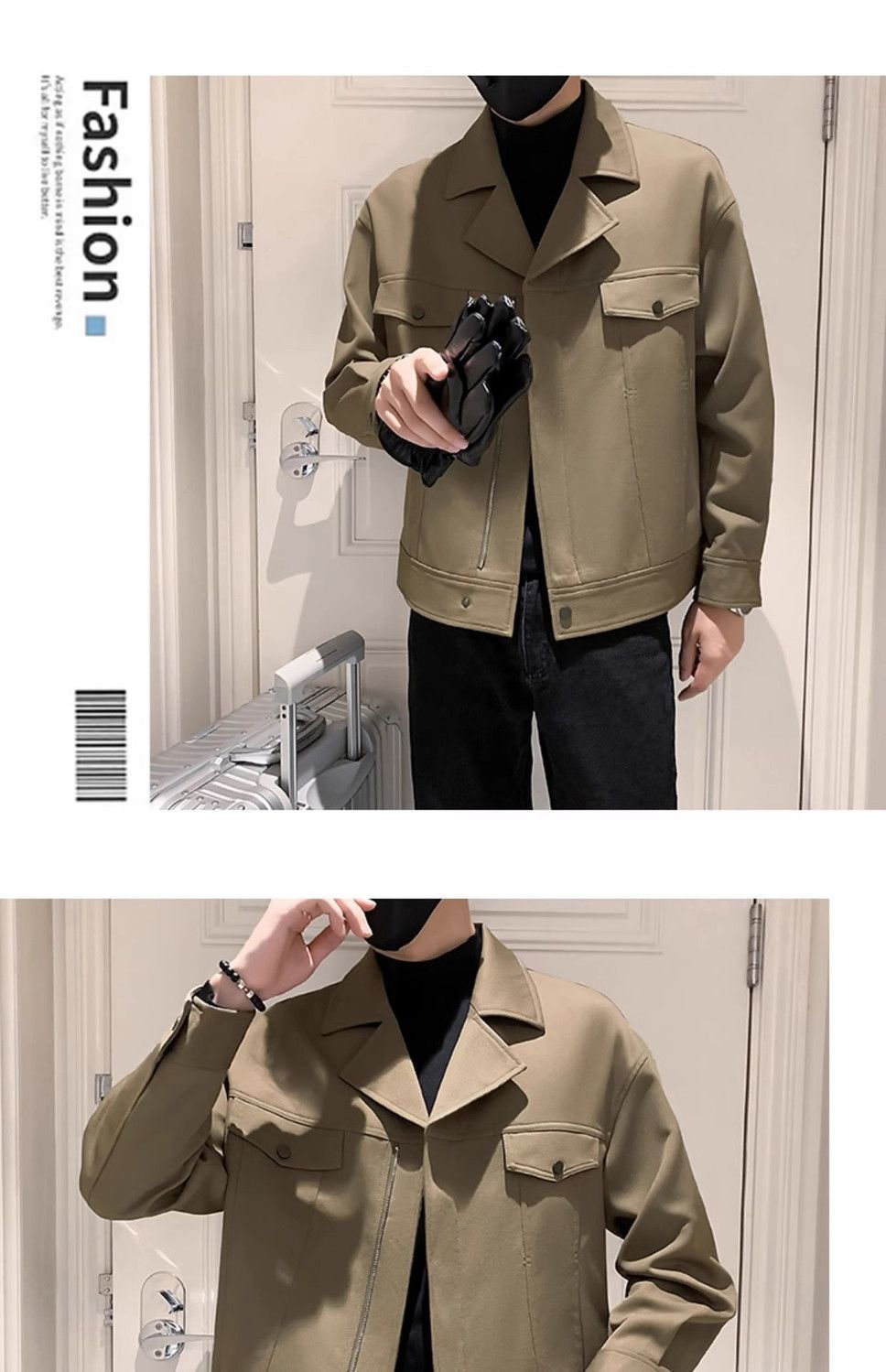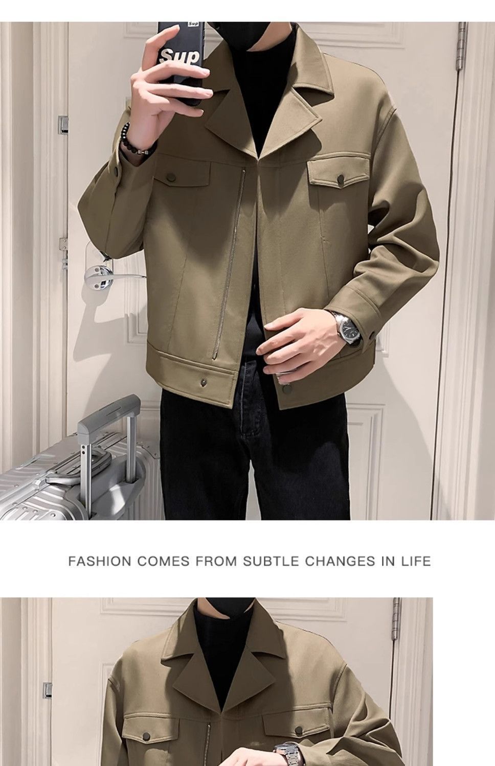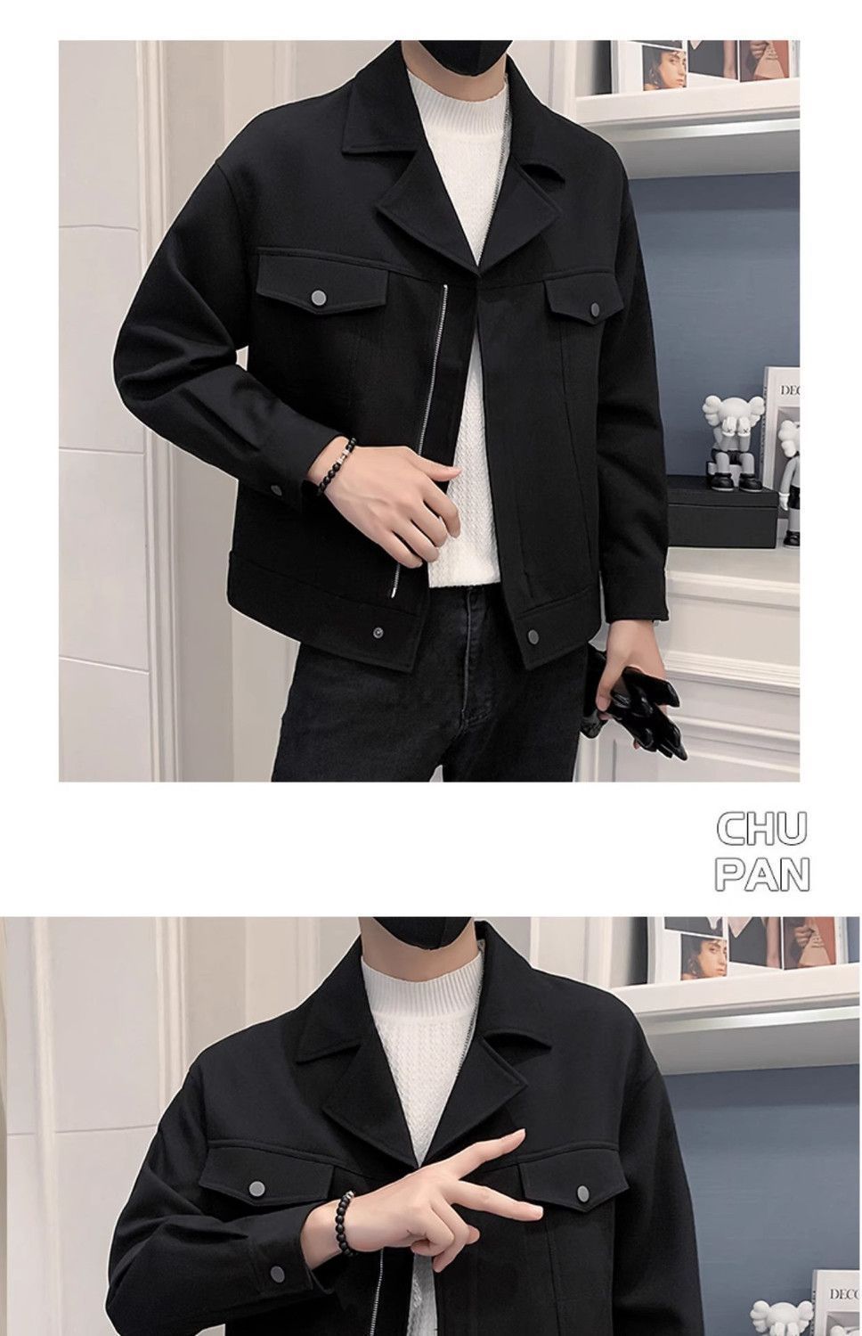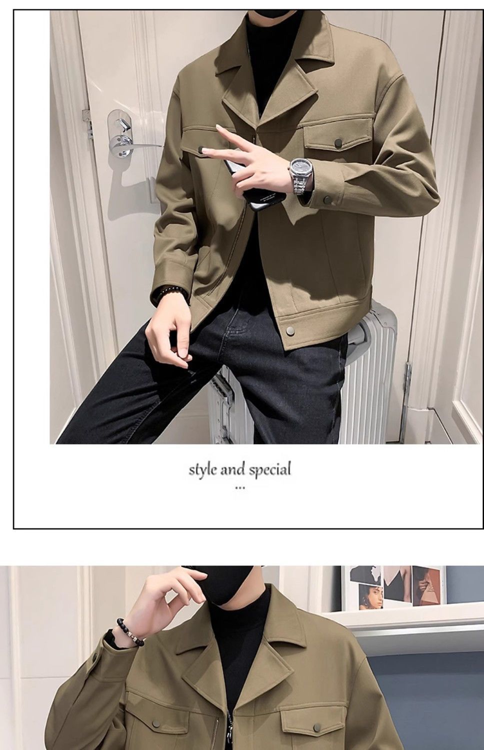 2024 가을과 겨울 새로운 유행 캐주얼 재킷 남자의 유행 브랜드 짧은 재킷 유행과 잘 생긴 스퀘어 칼라 외부 착용 탑스토어 가기