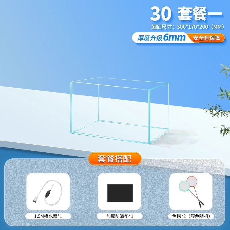 • [두꺼운 6mm] 30x17x20cm 골드 크리스탈 슈퍼 화이트 수조 + 벽걸이 필터 + 3종 세트