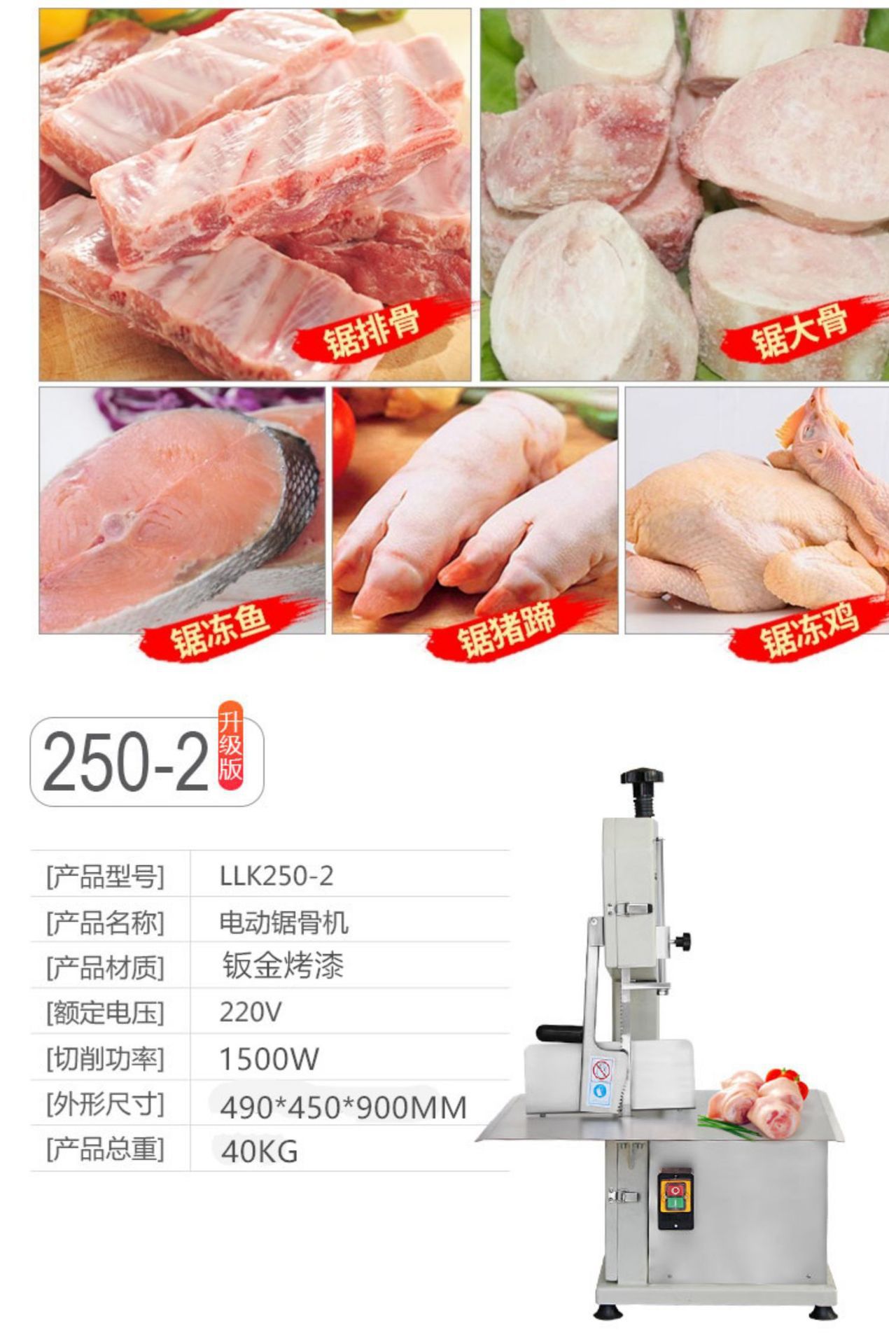 Spareribs 냉동 고기 뼈 상업 뼈 절단기 고기 절단기 전기 톱 어류 기계 데스크탑 250 소와 돼지 트로터스토어 가기
