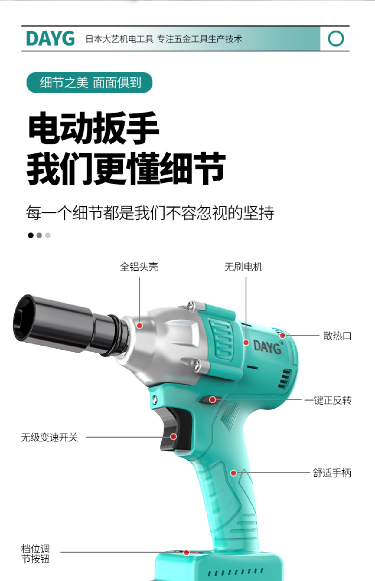 일본 Daoyi 전기 렌치 2106 브러시리스 충격 렌치 발판 목공 자동 수리 공기 대포 렌치